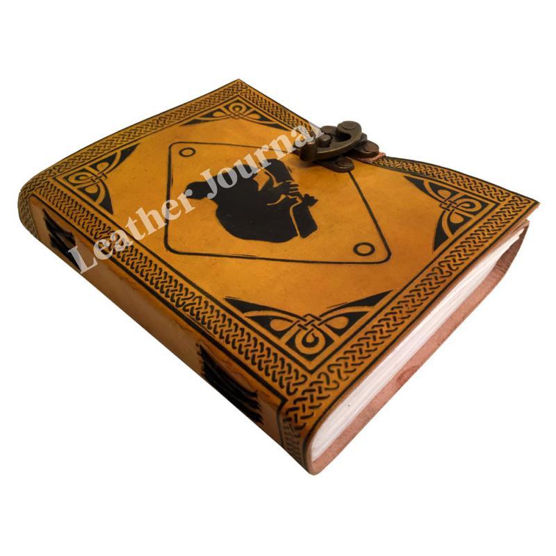 路Handcrafted out of Indian leather with 120 pages of recycled Indian cotton paper Pentagram Embossed Leather Journal Diary With one C Lock Blank Diary