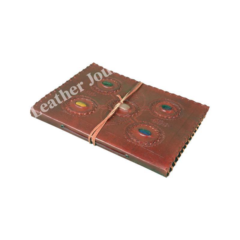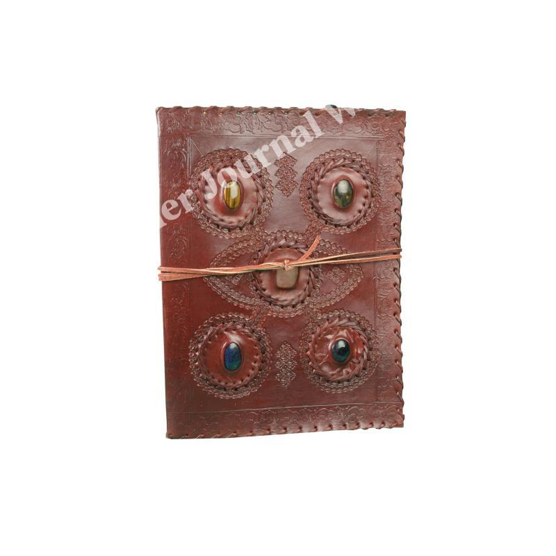 Ancient Five Stones Handmade Writing Journal Big Leather Notebook Dairy Note Book Journal Beautiful Color stone Book