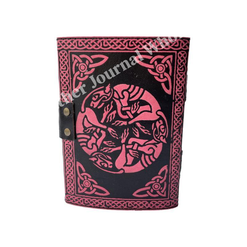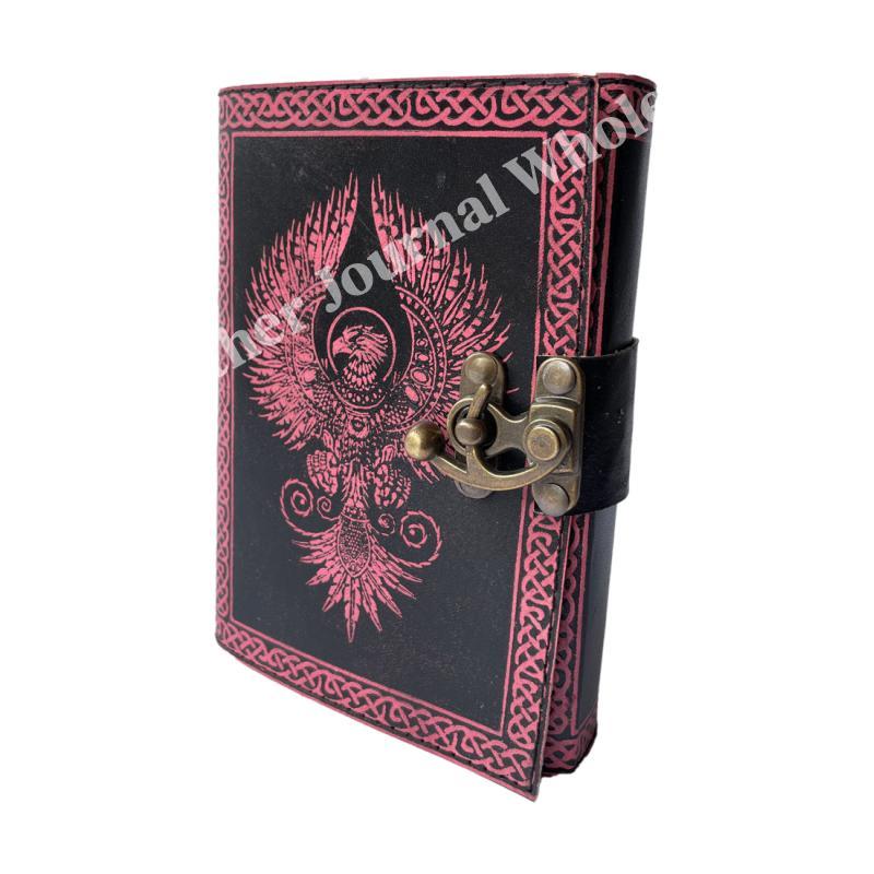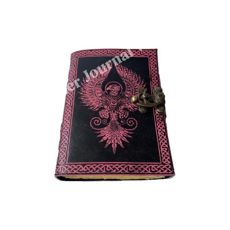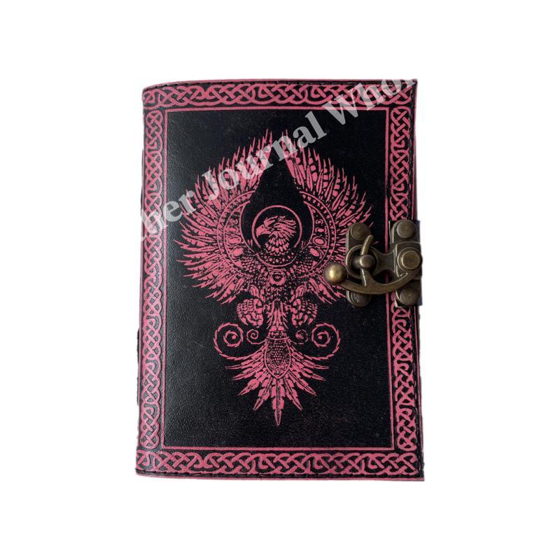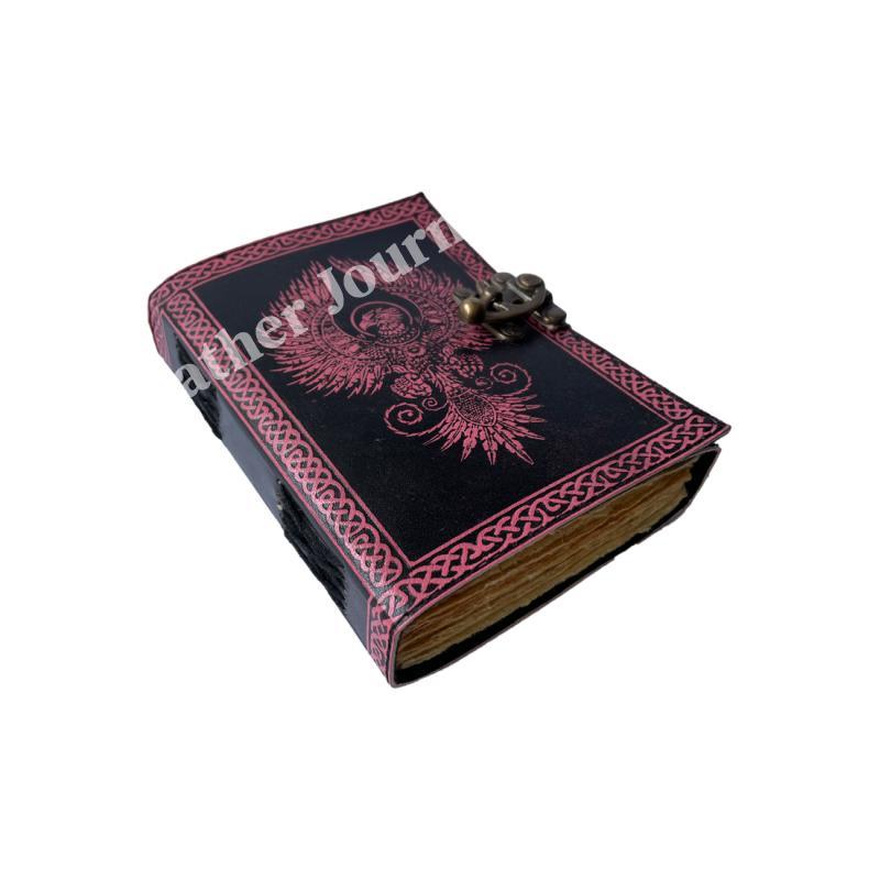 Antique Book of Spell Charmed Eagle Leather Journal Handmade Deckle Edge Paper Pink & Black Embossed Vintage Journal Sketchbook