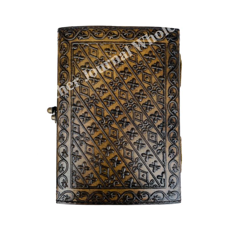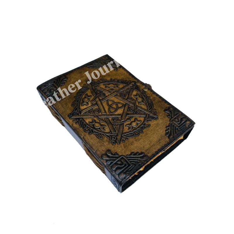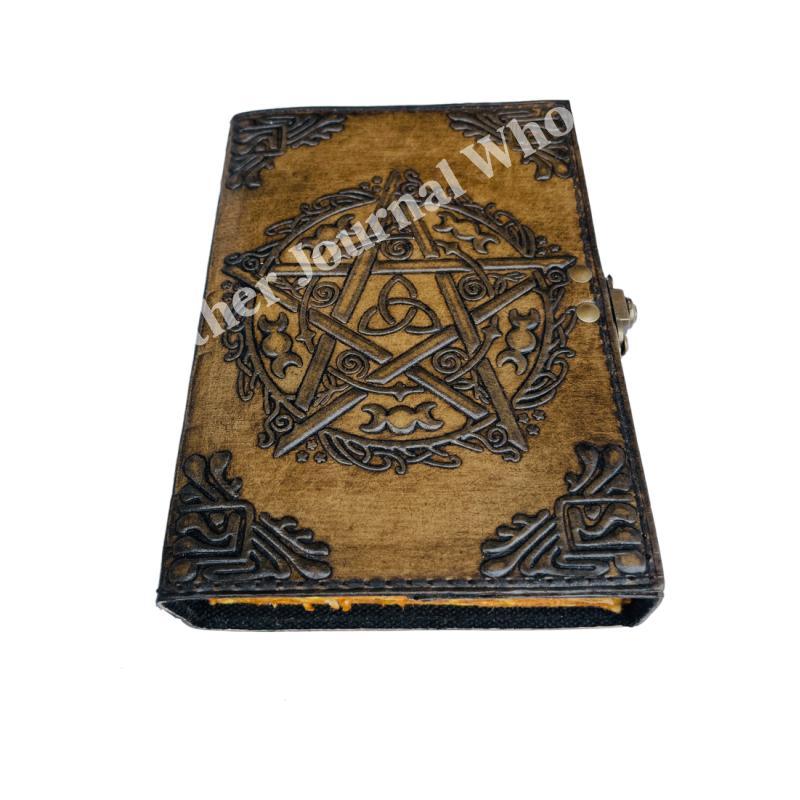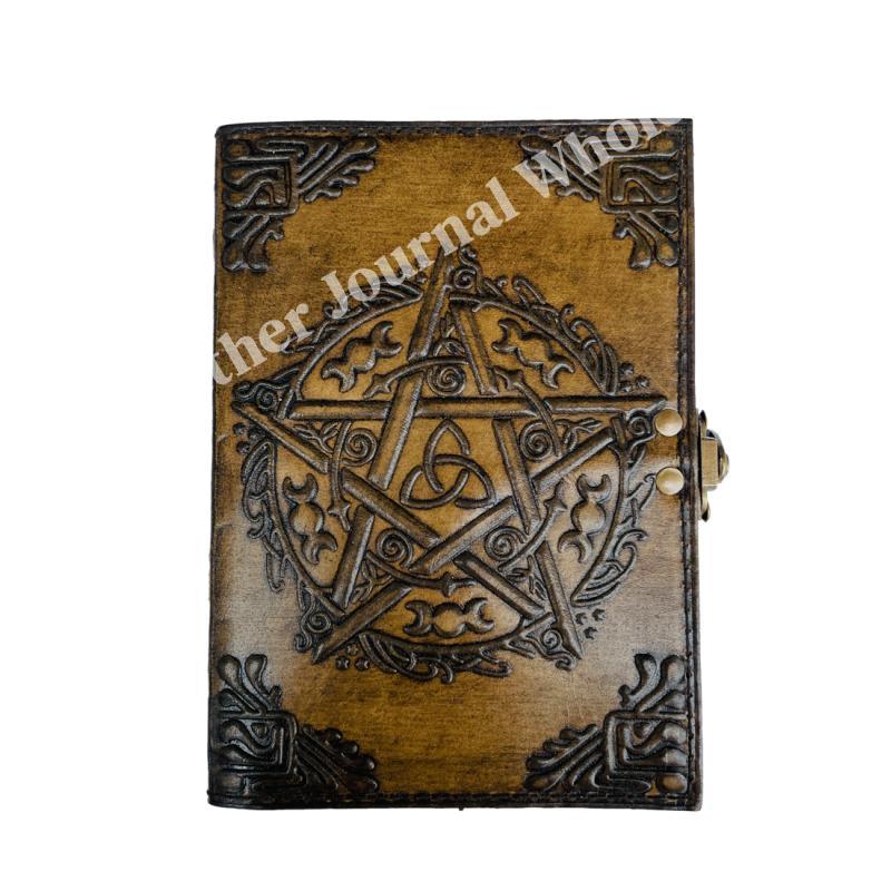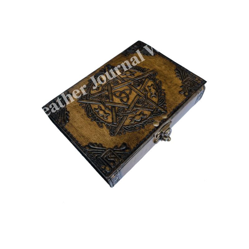 Antique Embossed Pentagram Leather Journal with Metal Closure Charcoal Guest book Handmade Paper Gift Him Day Personal organizer