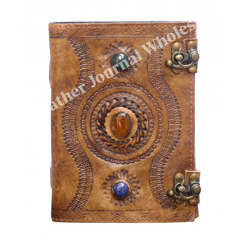 Antique Handmade Leather Journal Handmade Work Writing Three Stone Journals Diary Handmade Recycled Cotton 120 Blank Pages