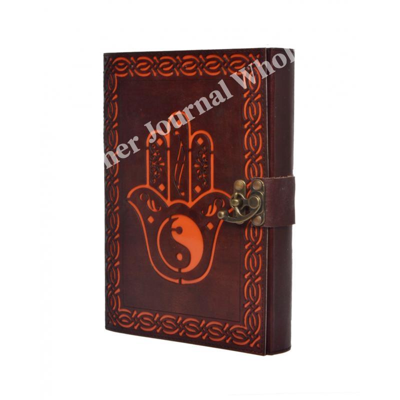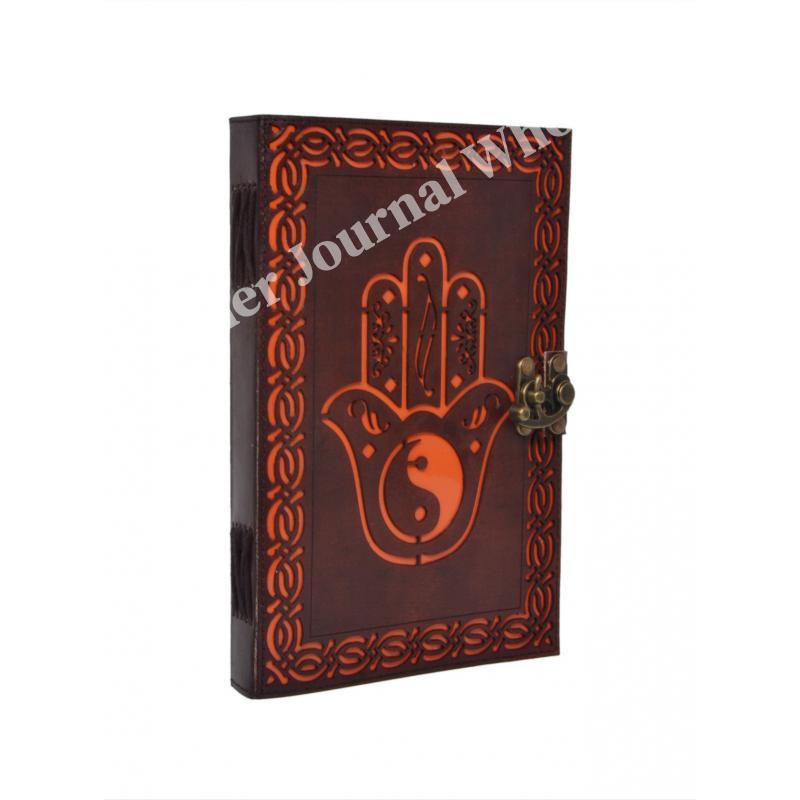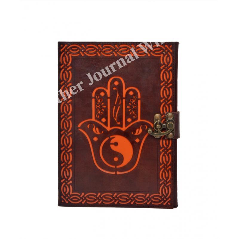 路Handcrafted out of Indian leather with 300 pages of recycled Indian cotton paper Pentagram Embossed Leather Journal Diary With one C Lock Blank Diary