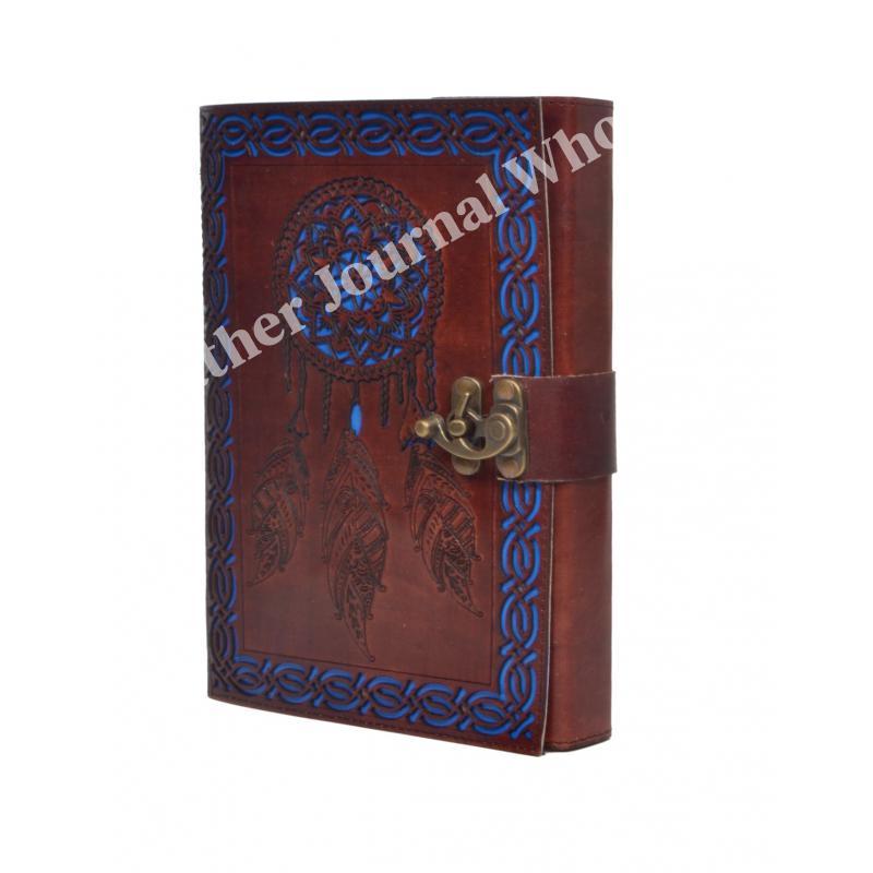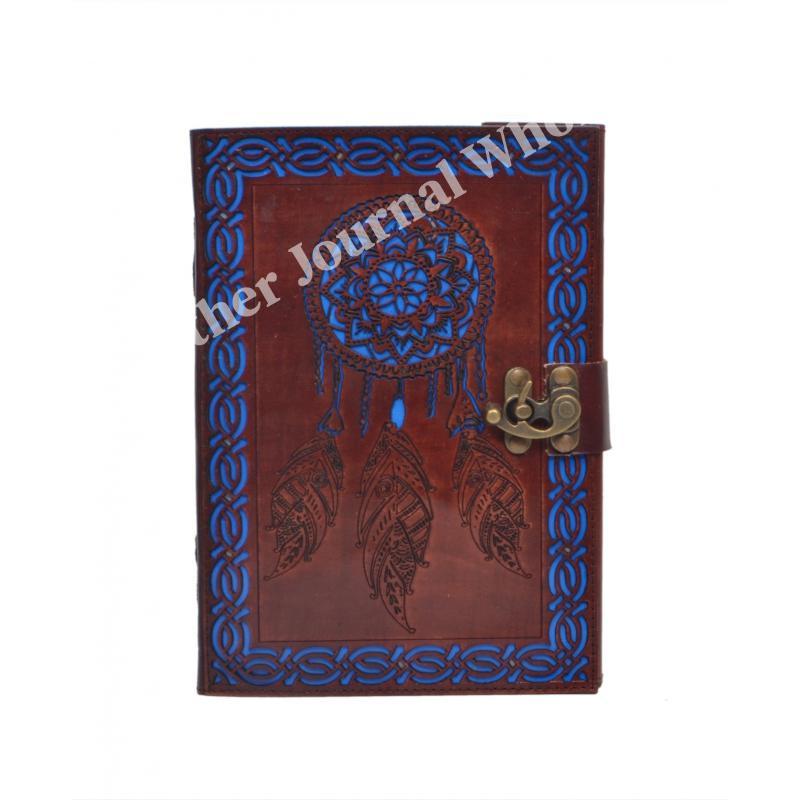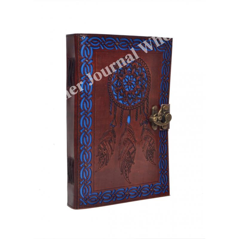 Antique Tool Cut Work Handmade Dream Catcher Design Leather Journal Notebook 120 Pages Blank Unlined Paper Notebook & Sketchbook
