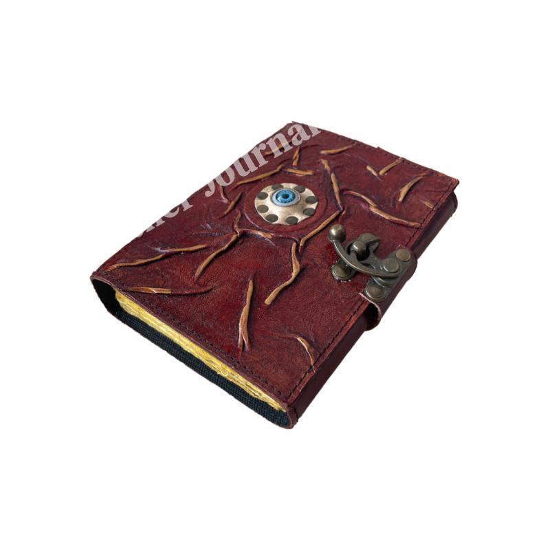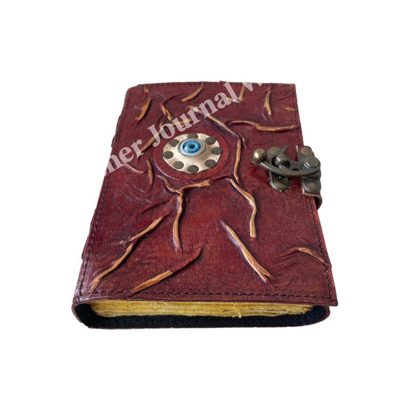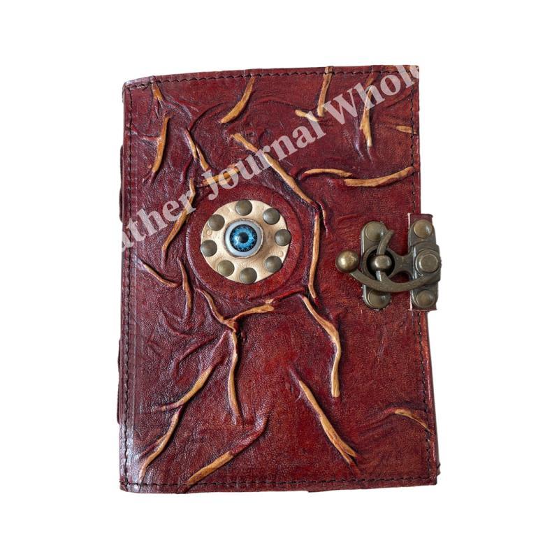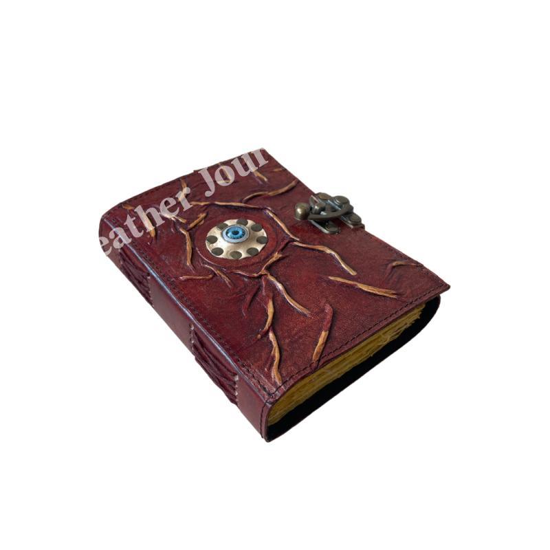Antique eye Book of Spells Leather Journal Deckle Edge Paper grimoire Journal Vintage Book of Shadows Blank spells prop notebook