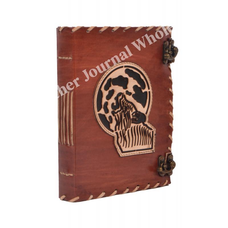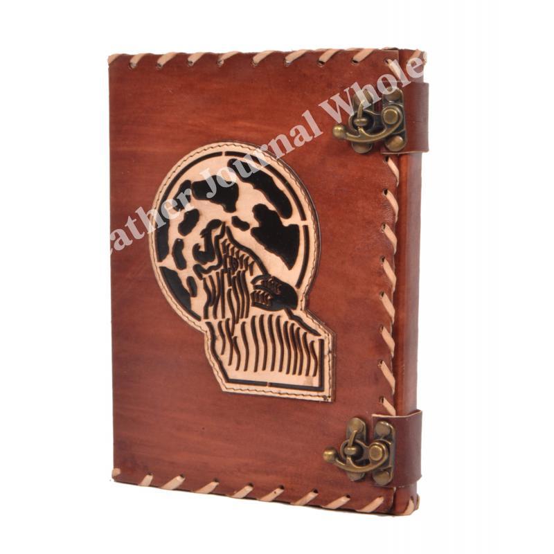 Beautiful Moon Wolf Design Handmade Vintage Leather Journal Notebook 120 Pages Blank Paper Leather Journal Notebook