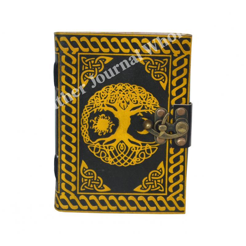 路Handcrafted out of Indian leather with 120 pages of recycled Indian cotton paper Pentagram Embossed Leather Journal Diary With one C Lock Blank Diary