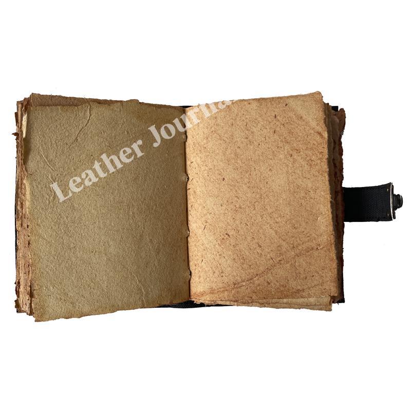 HANDMADE DECKLE PAPER : 100% handmade leather books are complemented with a durable thread and a bound-to-last hand-sewn binding, adding to the book’s decorative appeal - A self-leather wrap tie keeps your treasured writings under cover - Unlike many other leather notebooks with raw edges, our journal leather has an old-world feel with burnished finish.