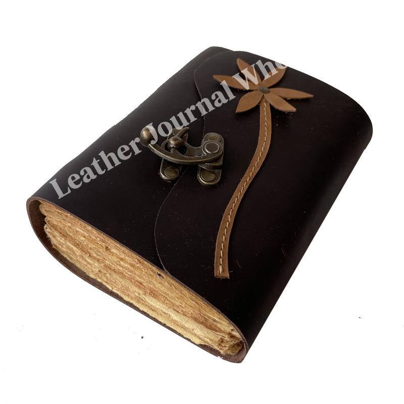 HANDMADE DECKLE PAPER : 100% handmade leather books are complemented with a durable thread and a bound-to-last hand-sewn binding, adding to the book’s decorative appeal - A self-leather wrap tie keeps your treasured writings under cover - Unlike many other leather notebooks with raw edges, our journal leather has an old-world feel with burnished finish.