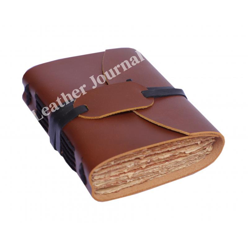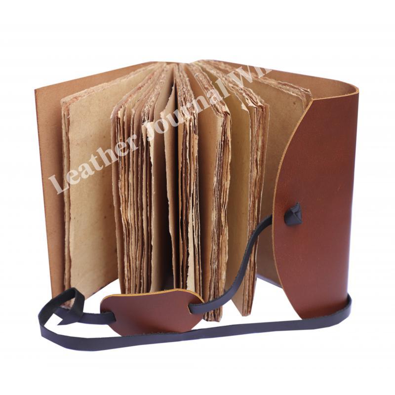 HANDMADE, HANDMADE DECKLE PAPER : 100% handmade leather books are complemented with a durable thread and a bound-to-last hand-sewn binding, adding to the book’s decorative appeal - A self-leather wrap tie keeps your treasured writings under cover - Unlike many other leather notebooks with raw edges, our journal leather has an old-world feel with burnished finish.