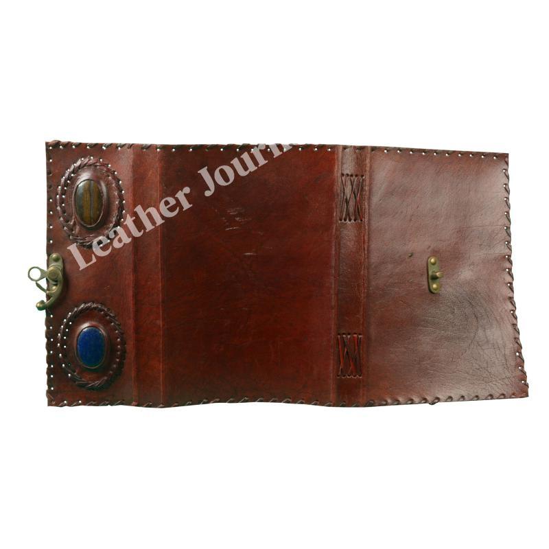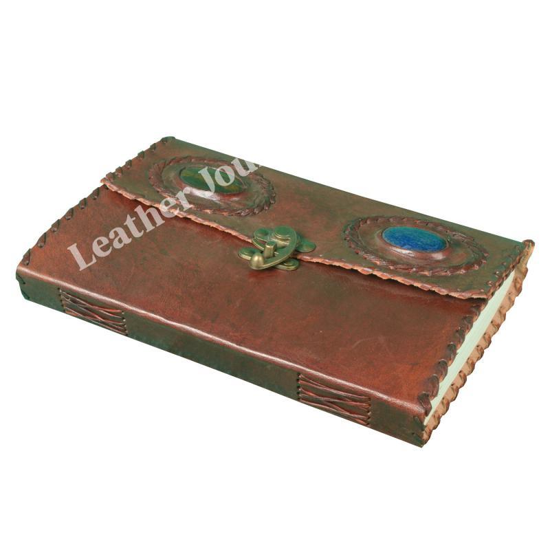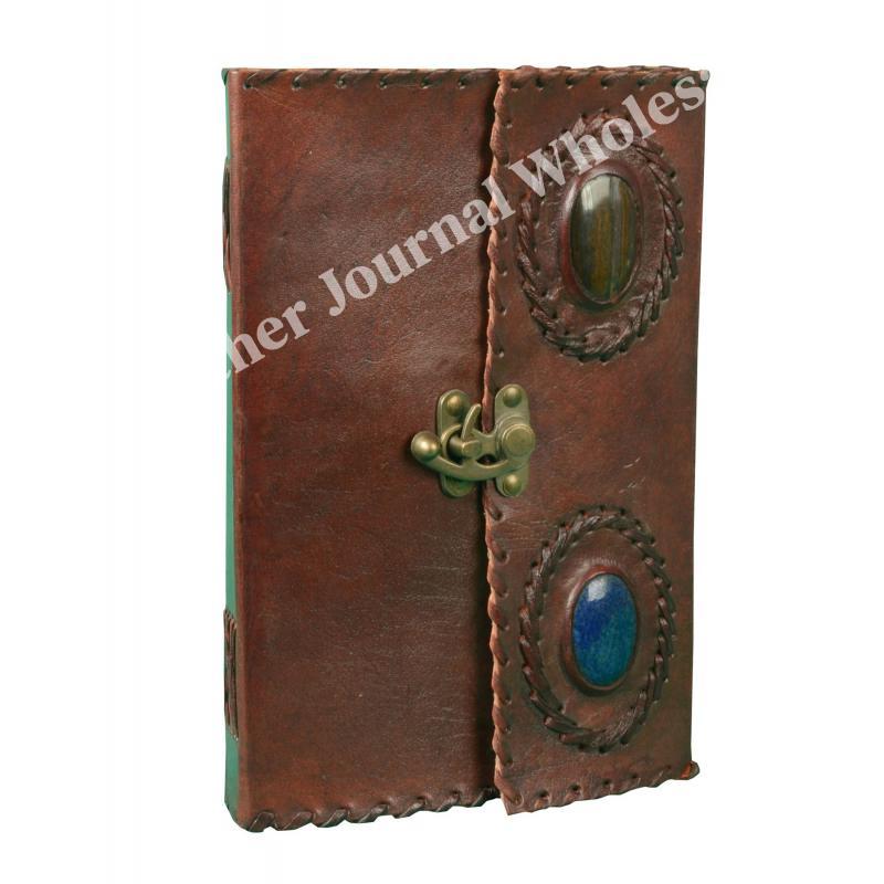 C- Lock Leather Two Stone Craft Paper Blank Diary Journal Handmade Beautiful Eco-friendly Note Book