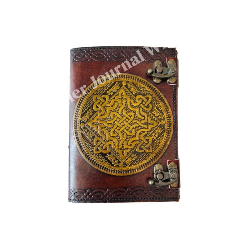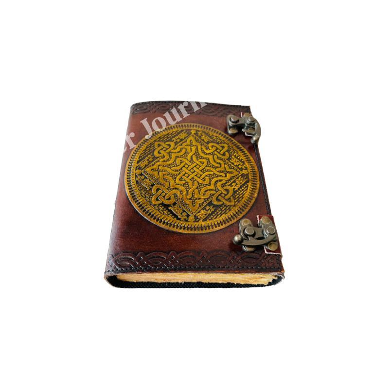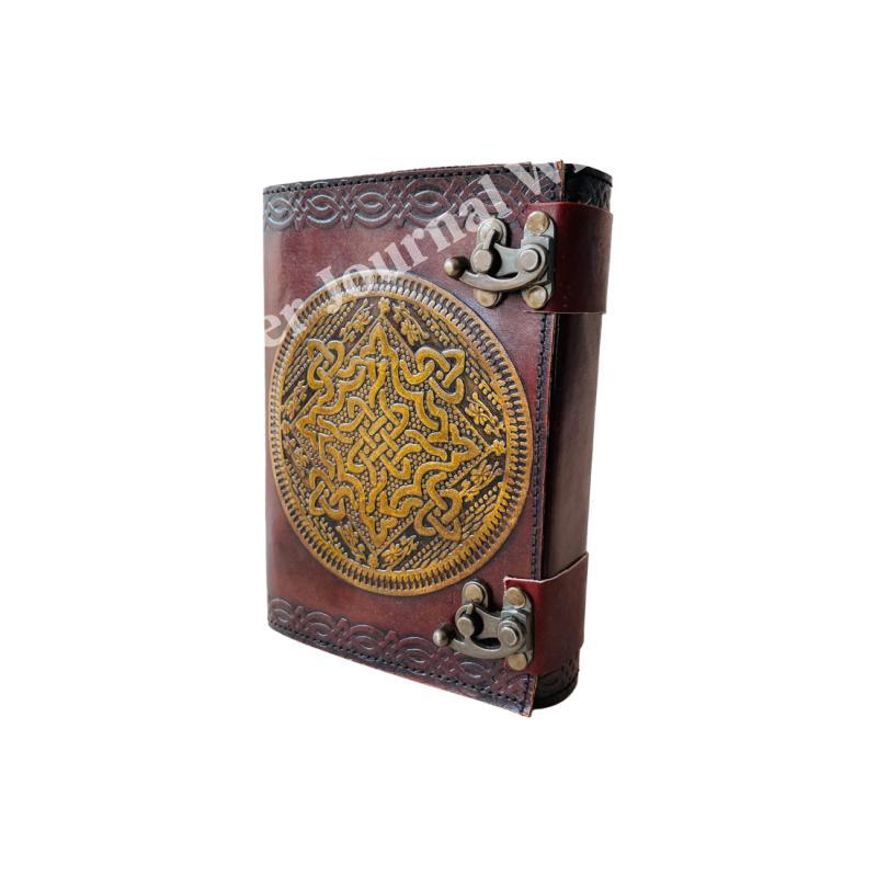 Celtic Embossed Antique Leather Journal with Metal Closure Yellow Vintage Guest Handmade Paper Book Of Shadows Gift for Him