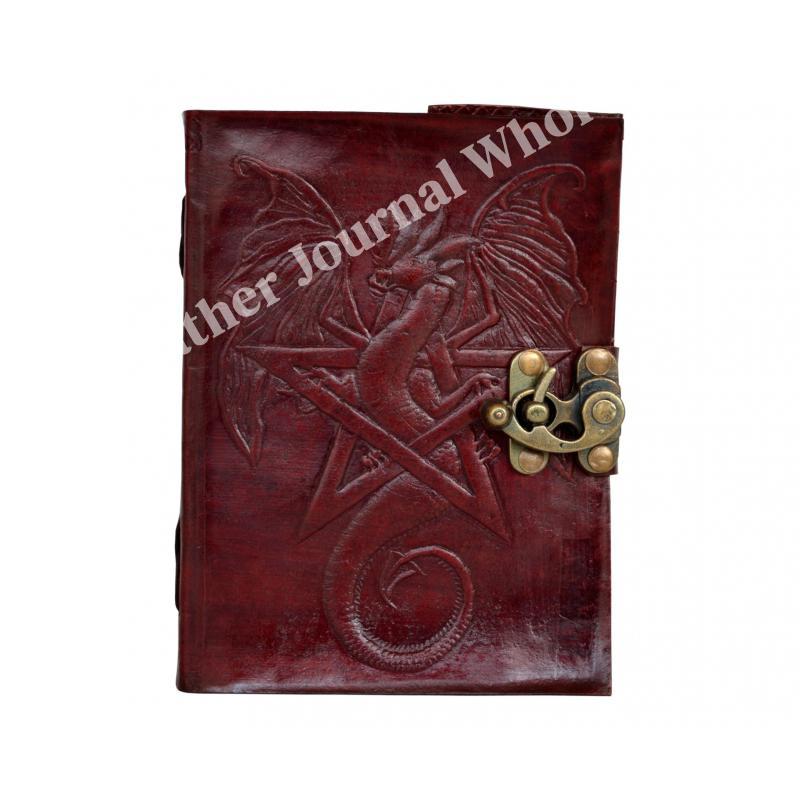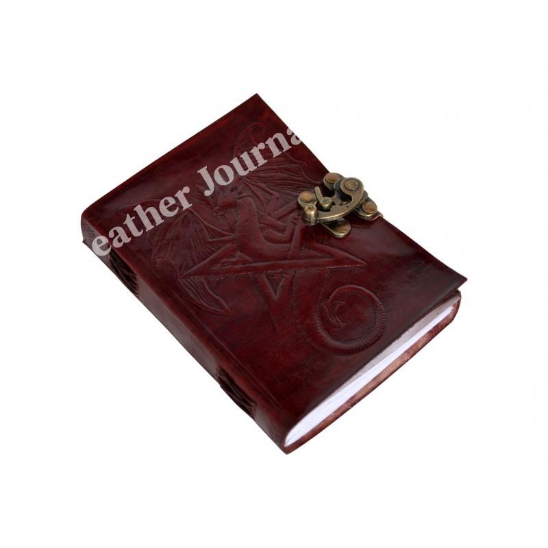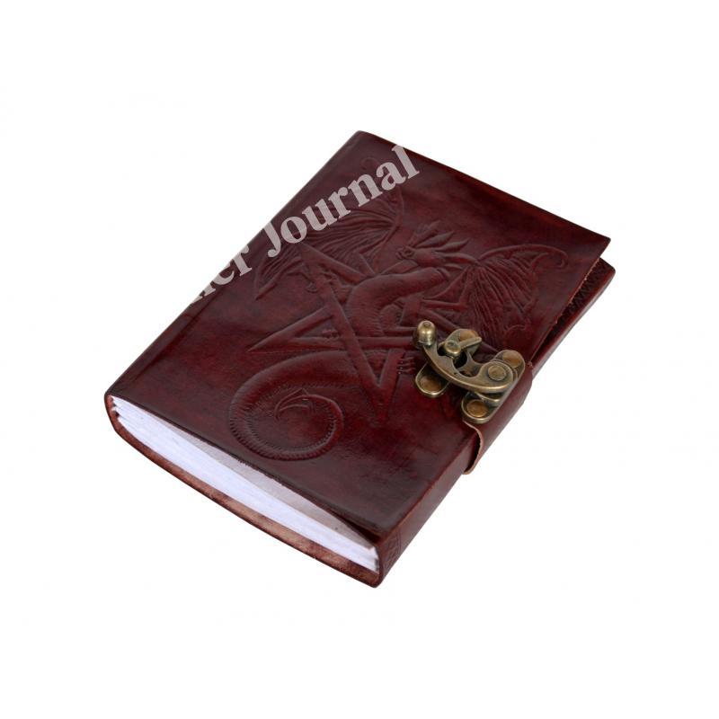 路Handcrafted out of Indian leather with 120 pages of recycled Indian cotton paper Pentagram Embossed Leather Journal Diary With one C Lock Blank Diary