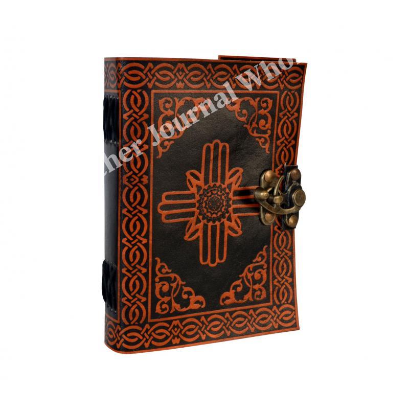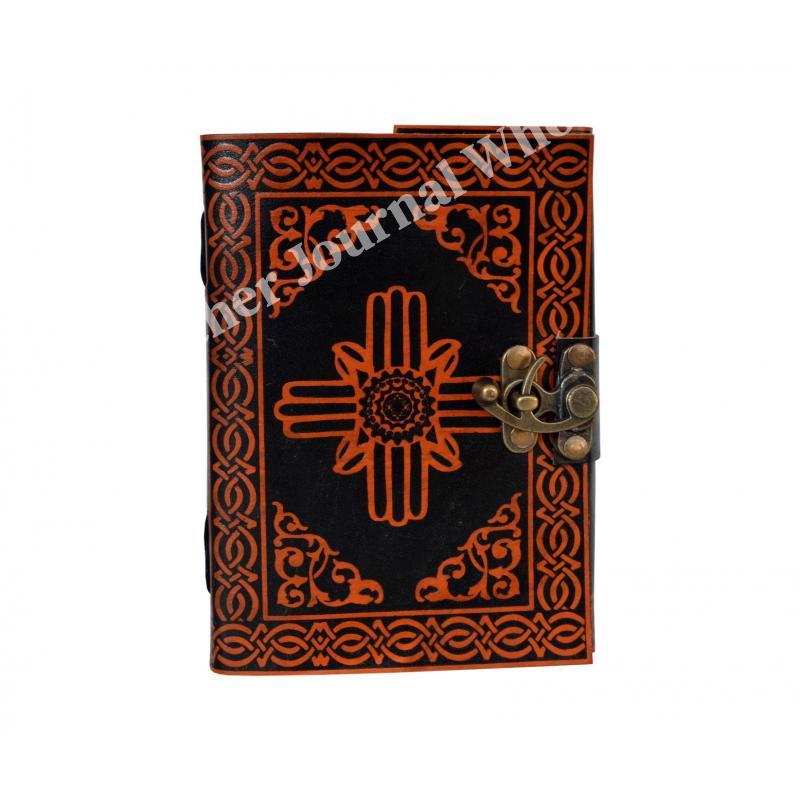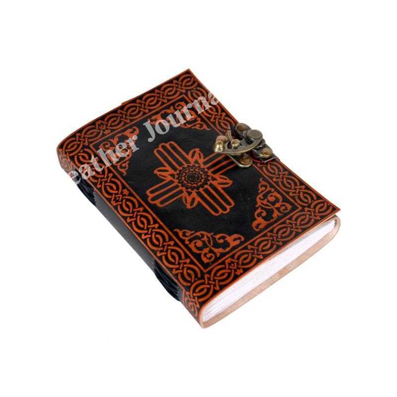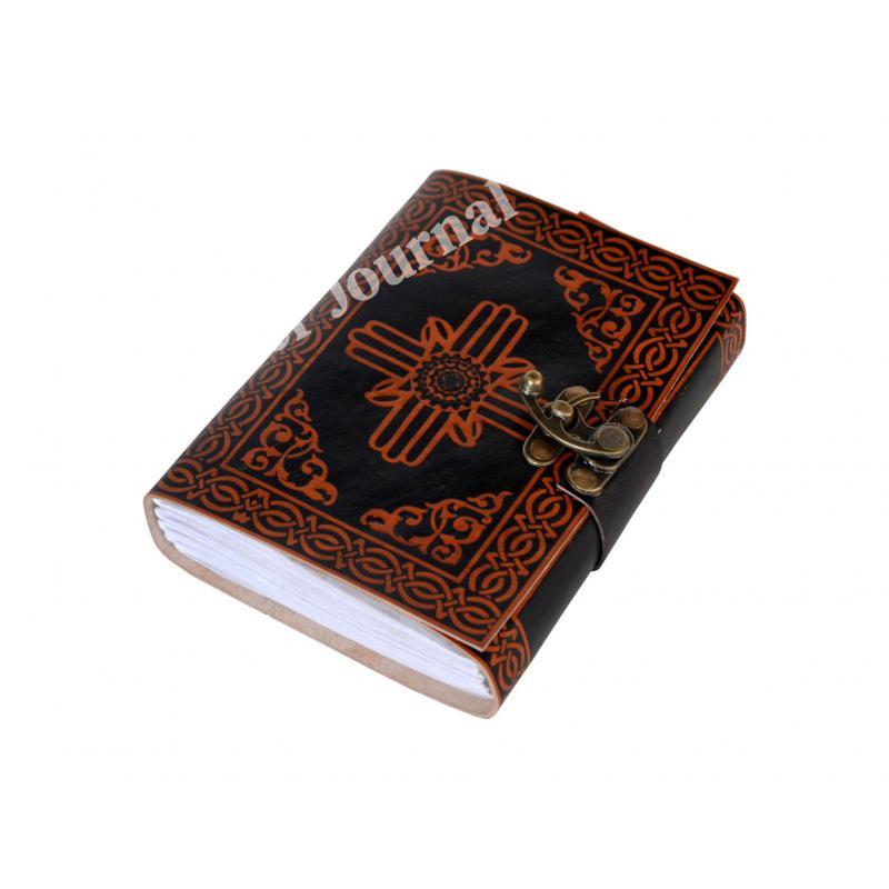 路Handcrafted out of Indian leather with 120 pages of recycled Indian cotton paper Pentagram Embossed Leather Journal Diary With one C Lock Blank Diary