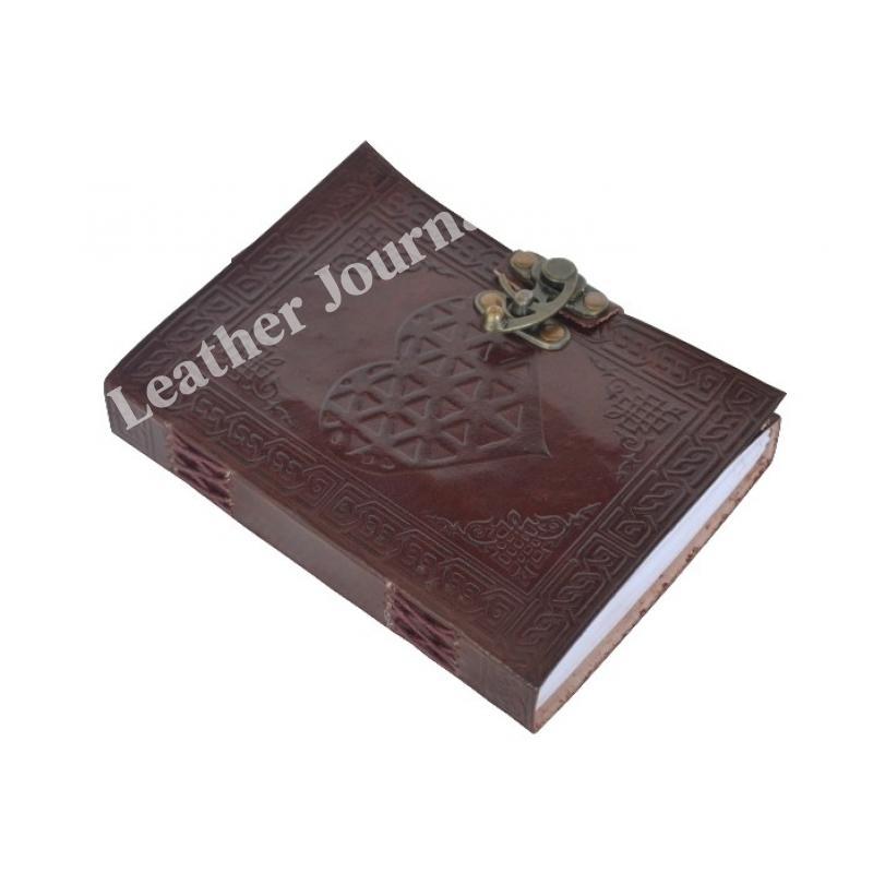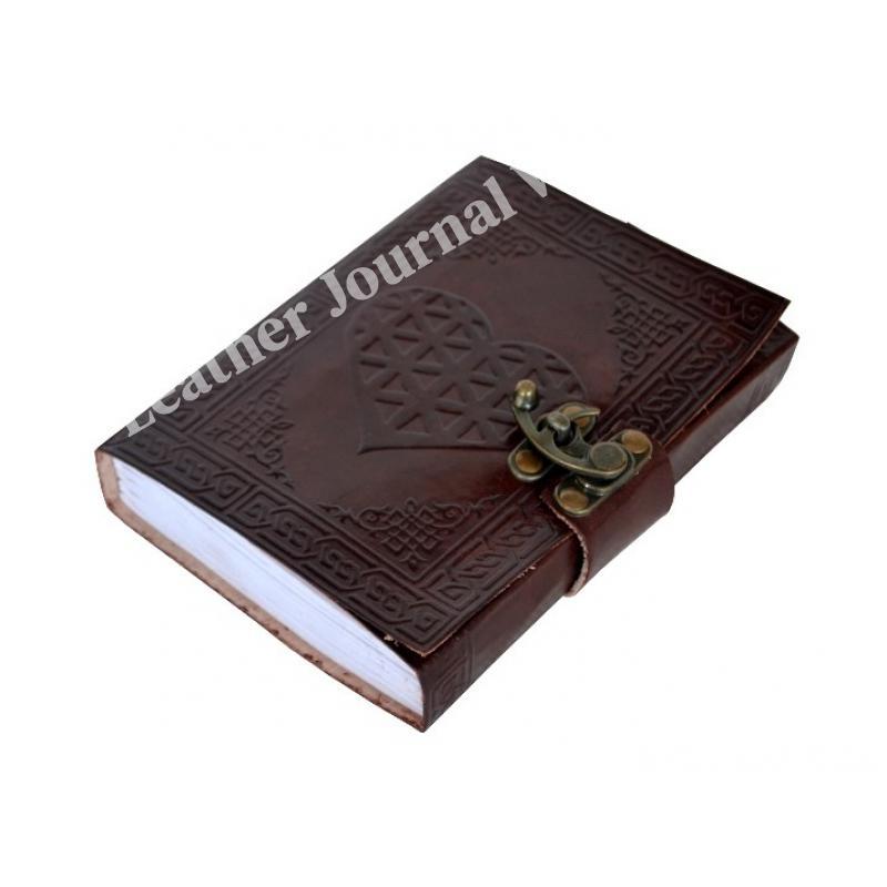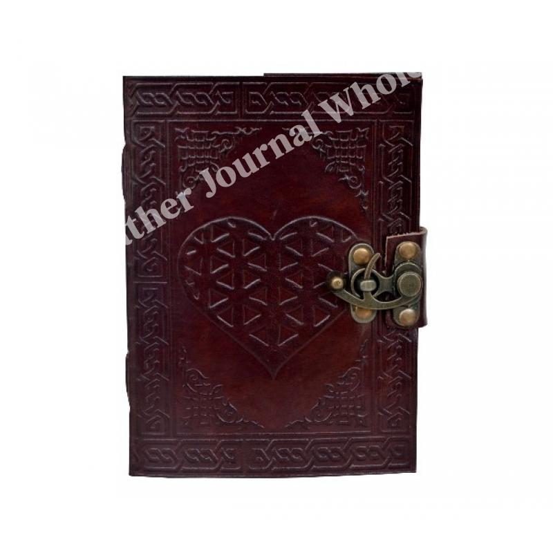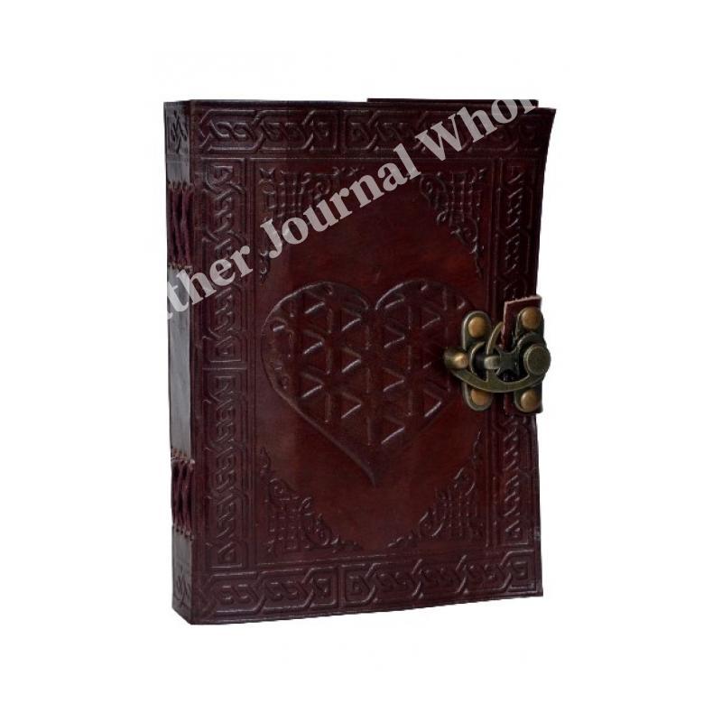Celtic Heart Embossed Leather Journal Instagram Photo Album Handmade paper Coptic Bound with Lock Closure Dairy