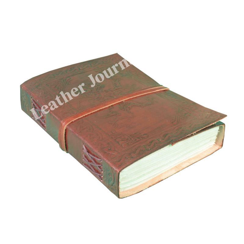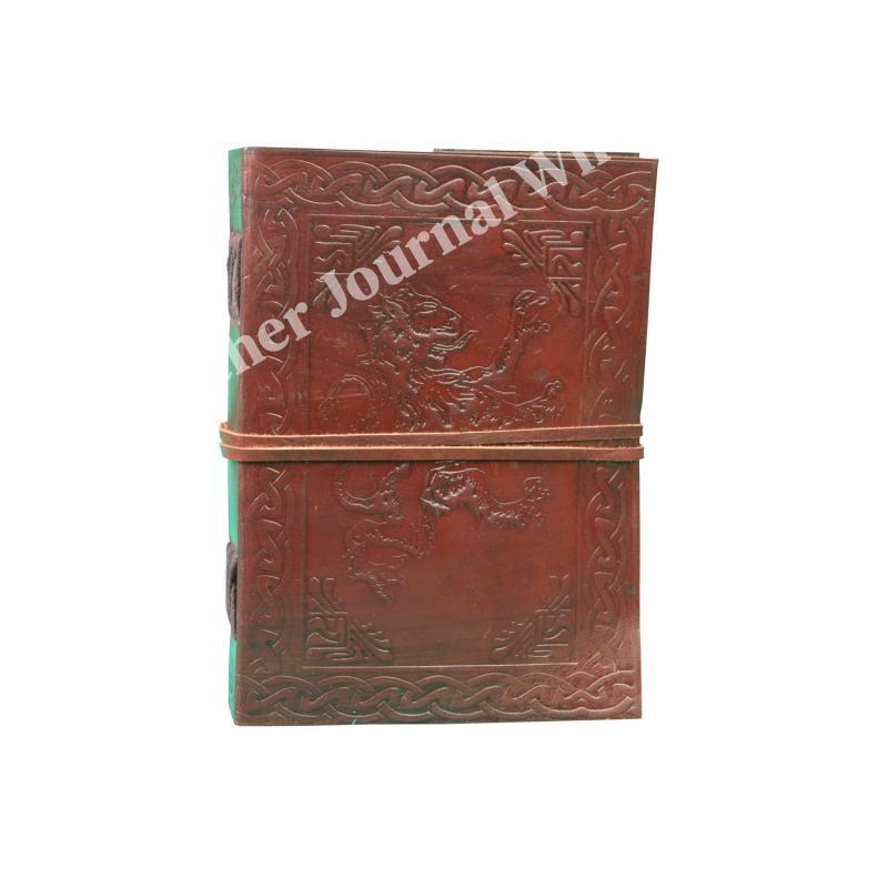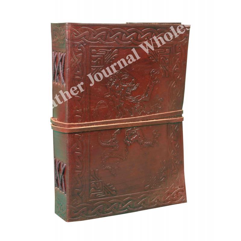 Celtic Lion Embossed Leather Journal Diary Handmade with leather strap closure