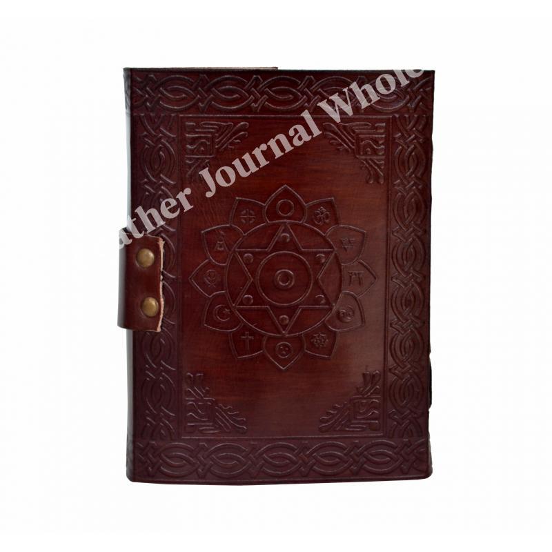 路Handcrafted out of Indian leather with 120 pages of recycled Indian cotton paper Pentagram Embossed Leather Journal Diary With one C Lock Blank Diary