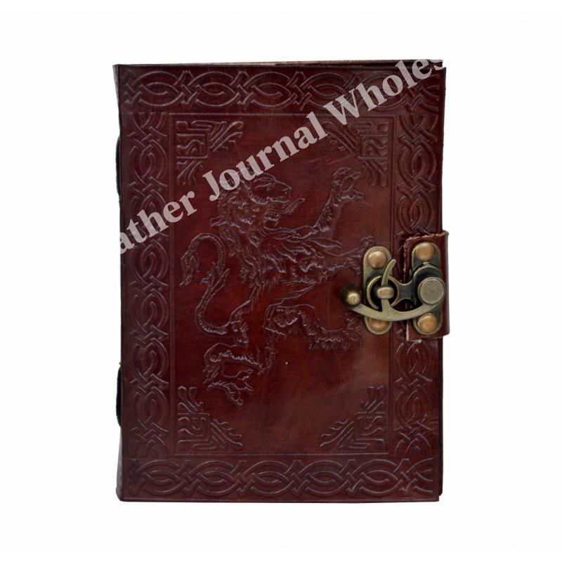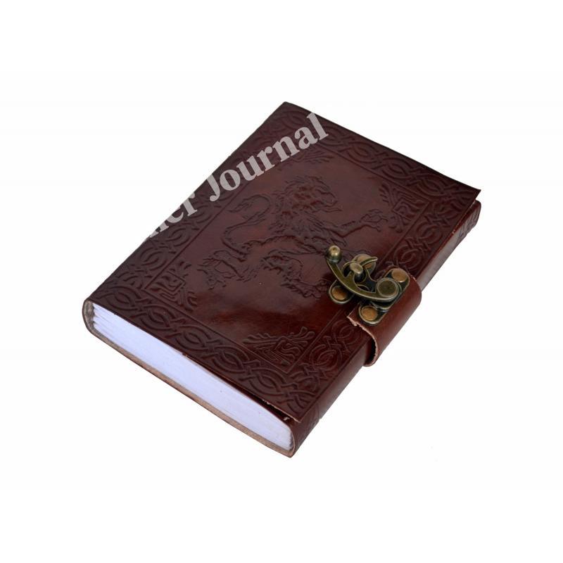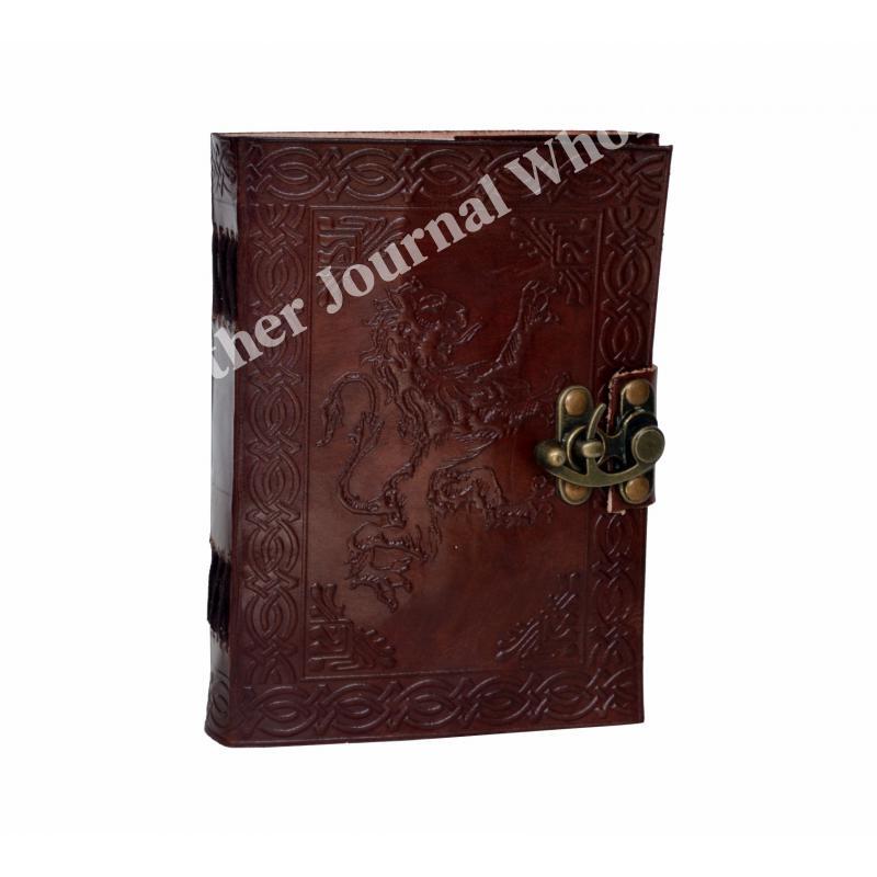 Celtic Lion Embossed Leather Journal Diary Handmade with leather strap closure C lock Journal