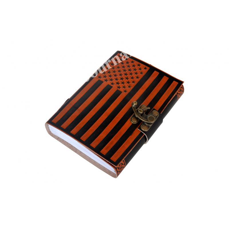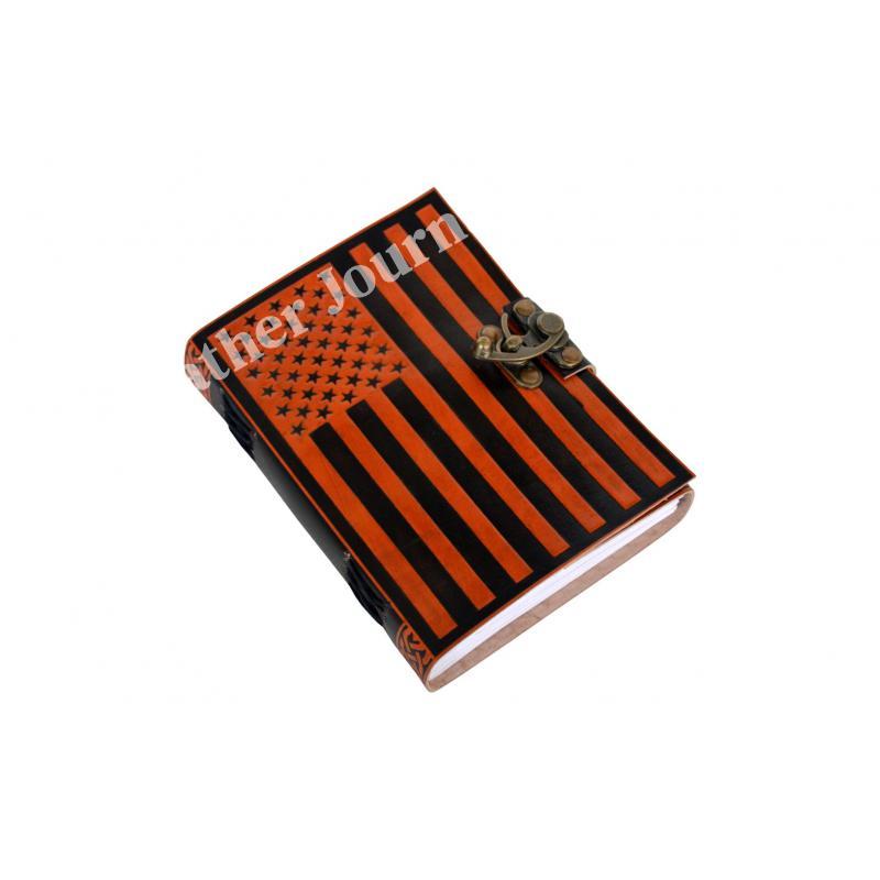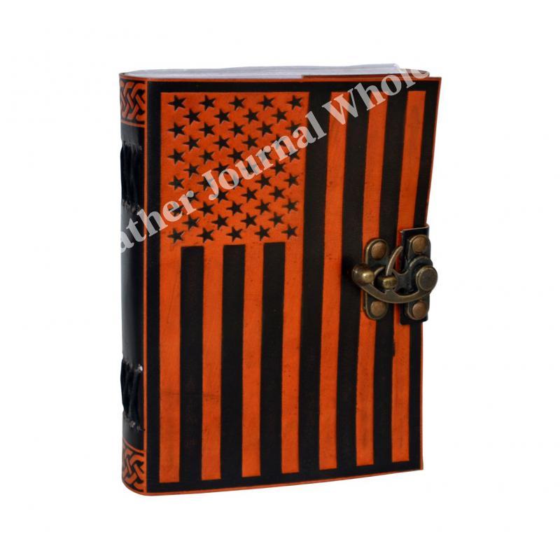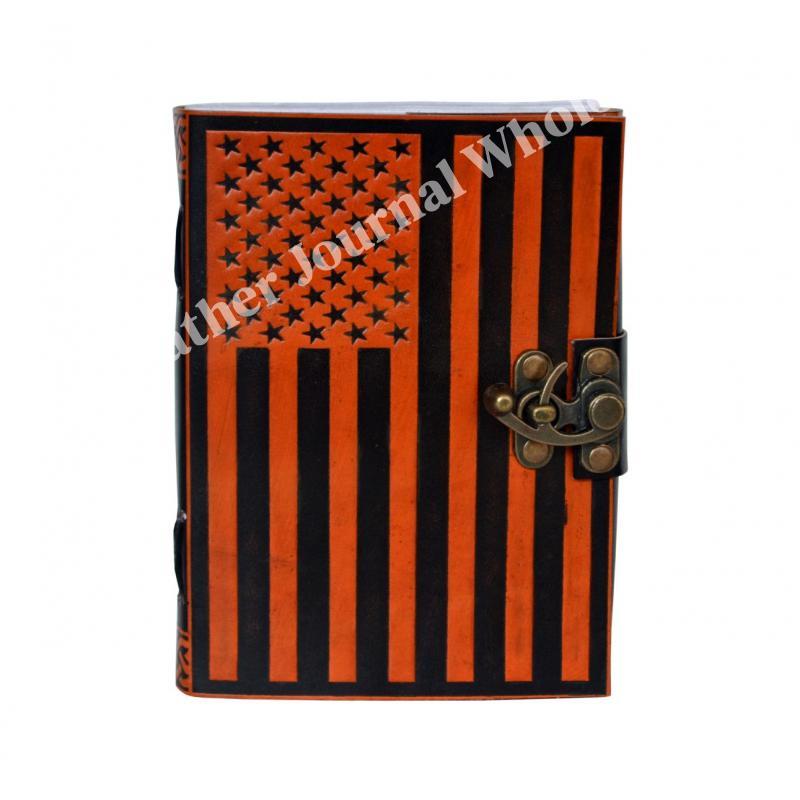 Celtic Shadow USA Flag Book Of Shadow Orange With Black Leather Journal Note Book