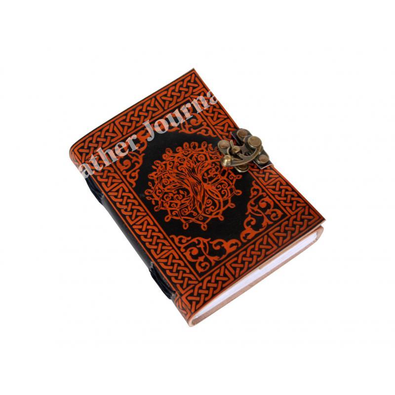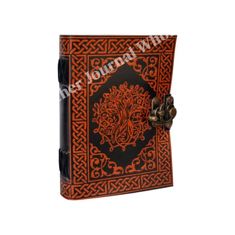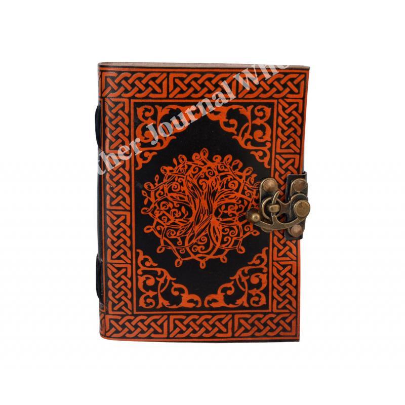 Celtic Tree Of Life Orange With Black Shadow Handmade Steampunk Embossed Feather Leather Journal Notebook Sketchbook
