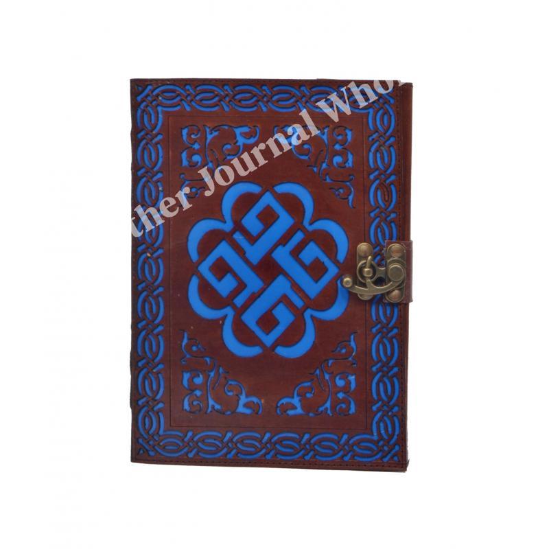 路Handcrafted out of Indian leather with 300 pages of recycled Indian cotton paper Pentagram Embossed Leather Journal Diary With one C Lock Blank Diary