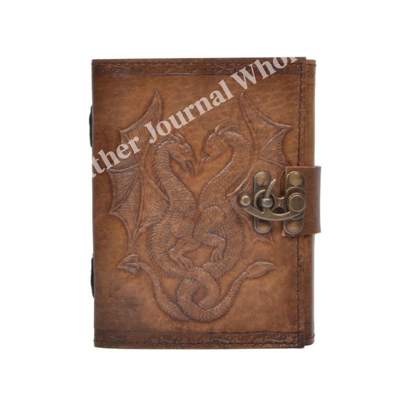 Direct Factory Price Leather Journal Wholesaler Double Dragon Leather Journal 120 Pages Blank Notebook