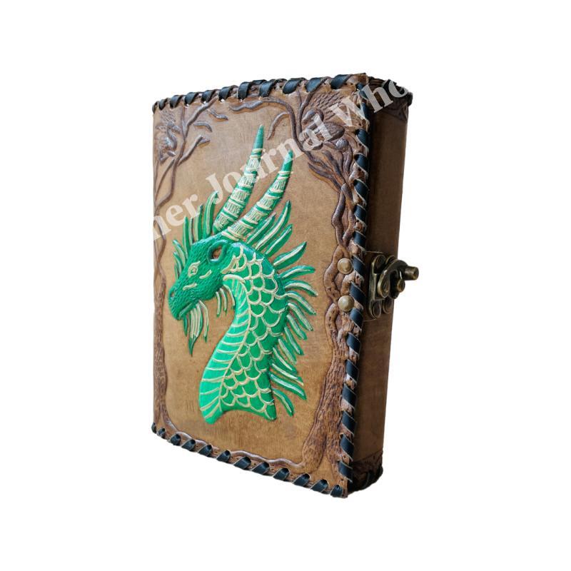 Dragon Journal Notebook Green Diary for Men & Women Vintage Handmade Leather Full Genuine Leather Diary With Hand Made Paper