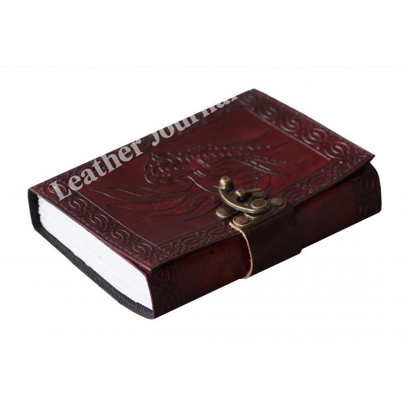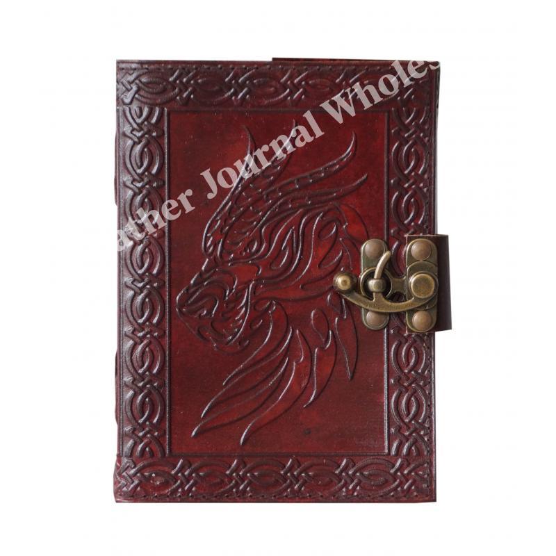 ✔ BEAUTIFULLY CRAFTED & UNIQUE EMBOSSED DRAGON C-LOCK EMBOSSED DESIGN: Made from Brown Color Leather with a real leather scent. Naturally tanned with special oil, if you scratch or fold this crazy horse leather, With Stone you create your own distressed style! your markings and they will fade away. Hand made from 100% genuine leather, our journals can vary in look and shade, producing a unique item, no two are ever the same - a special keepsake for your thoughts & ideas