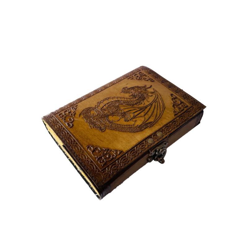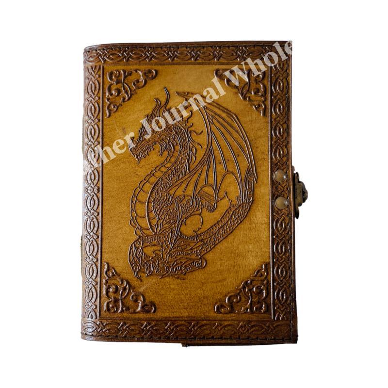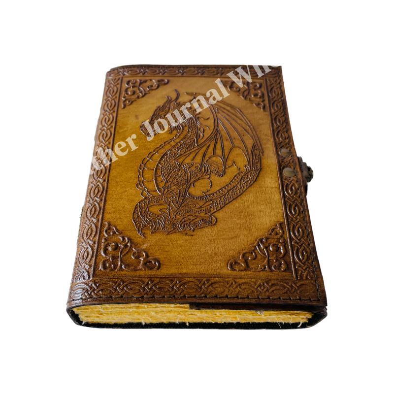 Dragon vintage leather book of spells Celtic wiccan journals for writing prop Charcoal handmade embossed deckle Art paper Diary