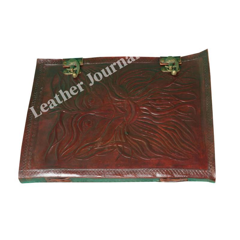 Embossed Large Size Leather Blank Journal, Leather Journal Blank Pages Dairy Note Book