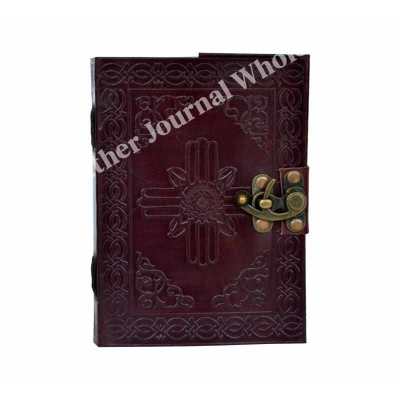 路Handcrafted out of Indian leather with 120 pages of recycled Indian cotton paper Pentagram Embossed Leather Journal Diary With one C Lock Blank Diary