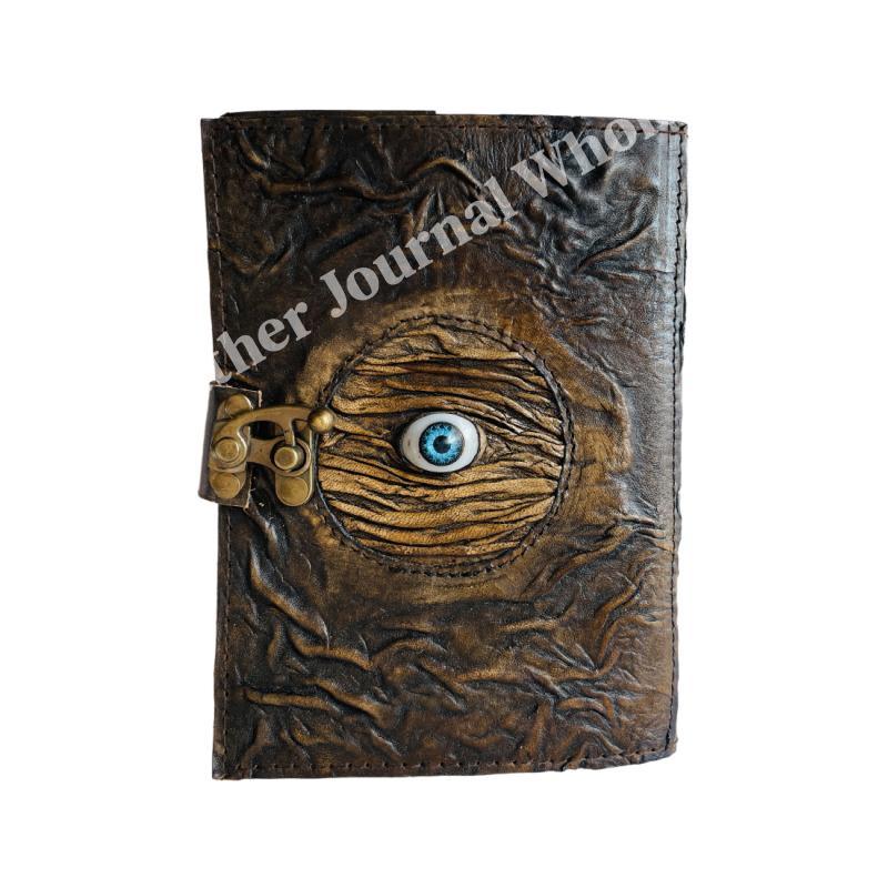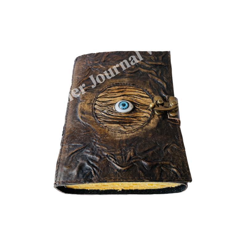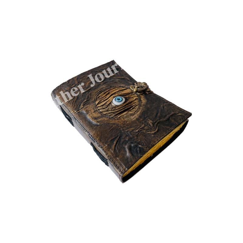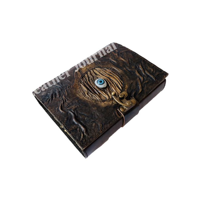Eye Hocus Pocus vintage leather book of spells Celtic wiccan journals for writing Charcoal handmade embossed deckle Art paper