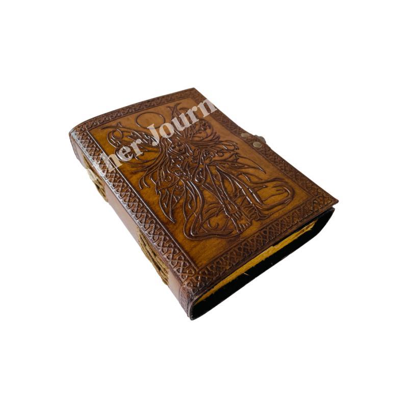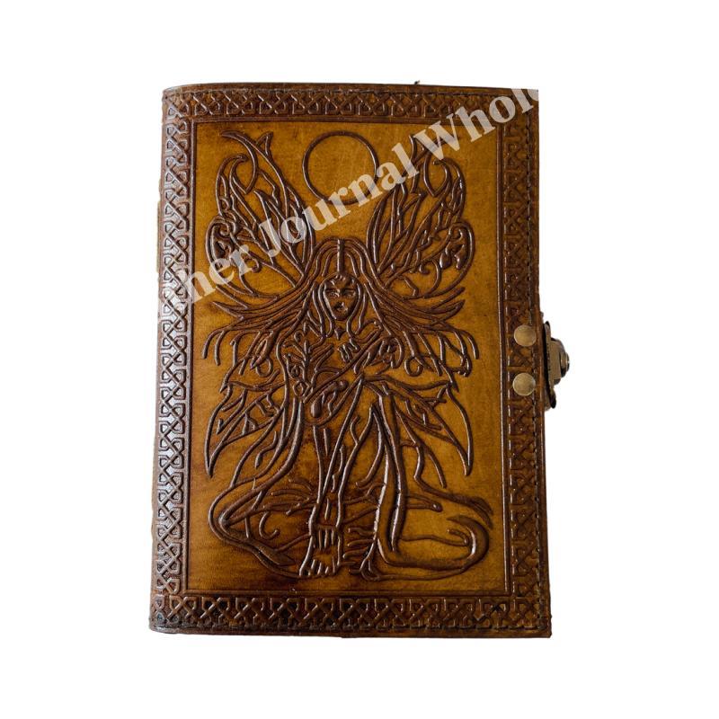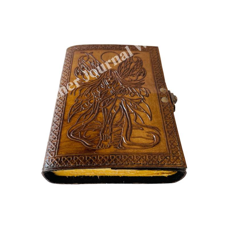 Fairy Women vintage leather book of spells Celtic wiccan journals for writing prop Charcoal handmade embossed deckle Art notebook