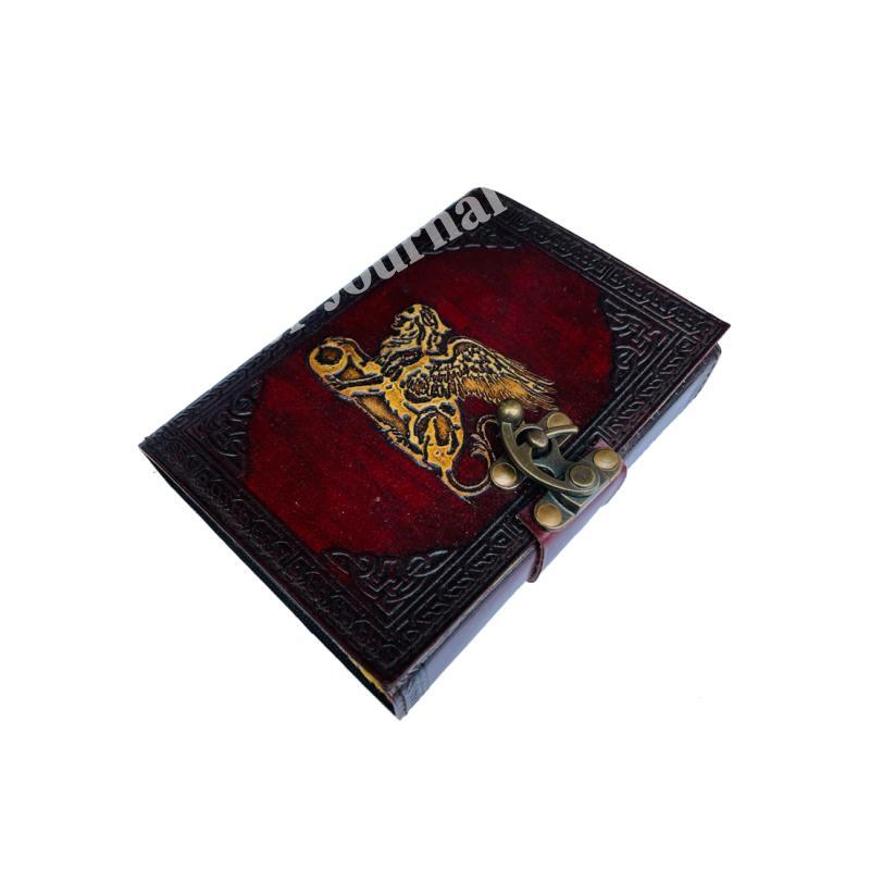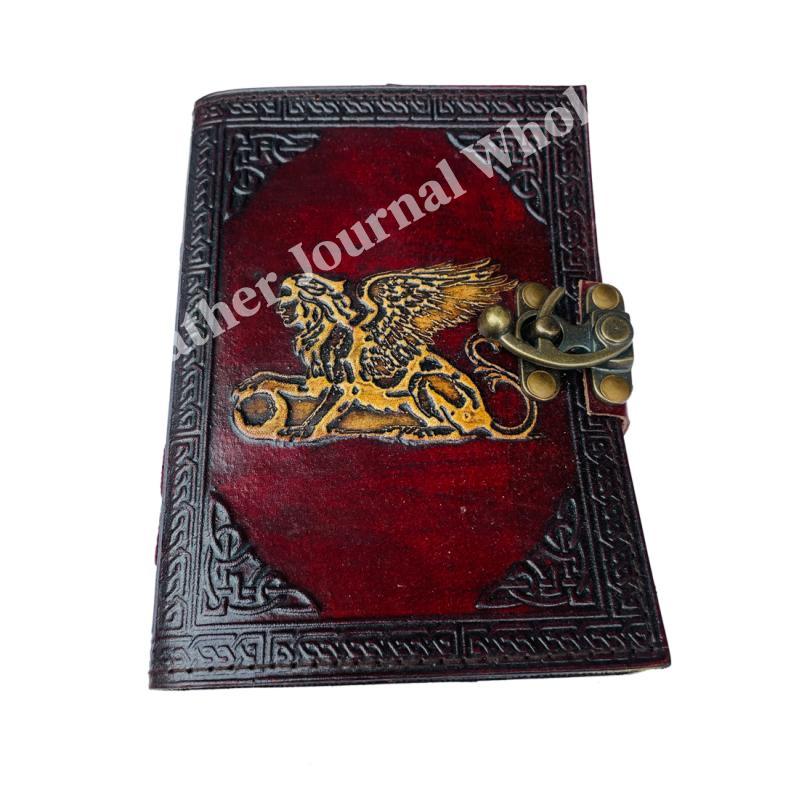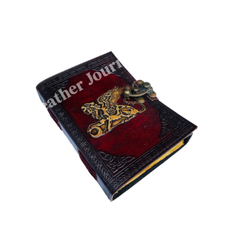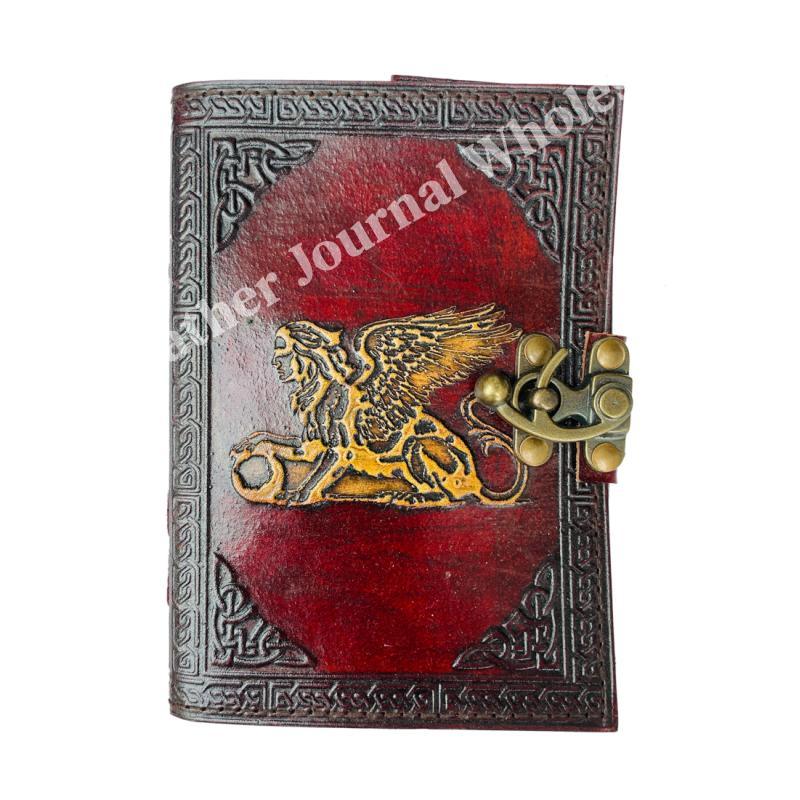 Greek Mytholigical Creature that is Half Lion and Half Woman Vintage Leather Journal yellow Genuine Cover Book of Spells Wiccan