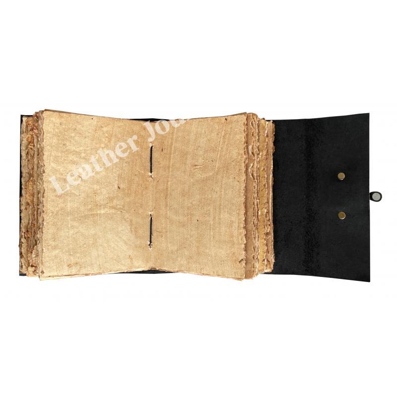 HANDMADE COTTON PAPER : 100% handmade leather books are complemented with a durable thread and a bound-to-last hand-sewn binding, adding to the book’s decorative appeal - A self-leather wrap tie keeps your treasured writings under cover - Unlike many other leather notebooks with raw edges, our journal leather has an old-world feel with burnished finish.