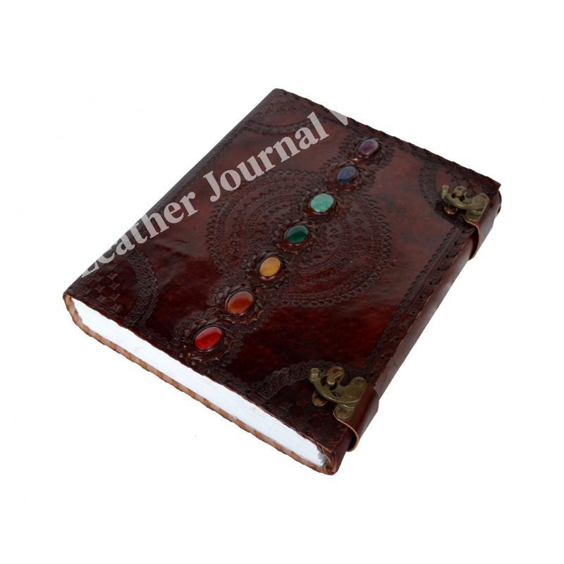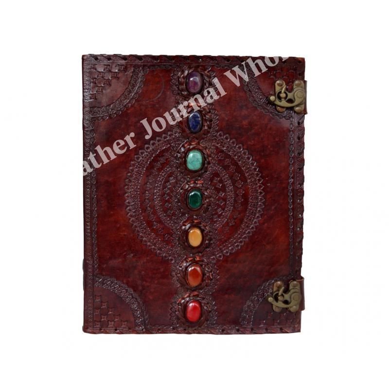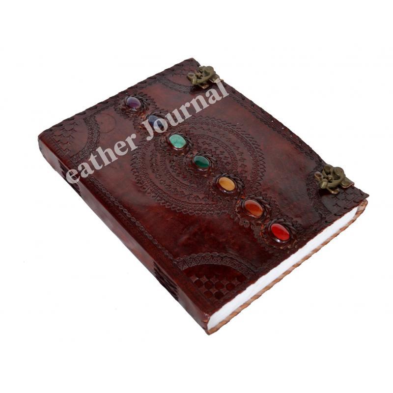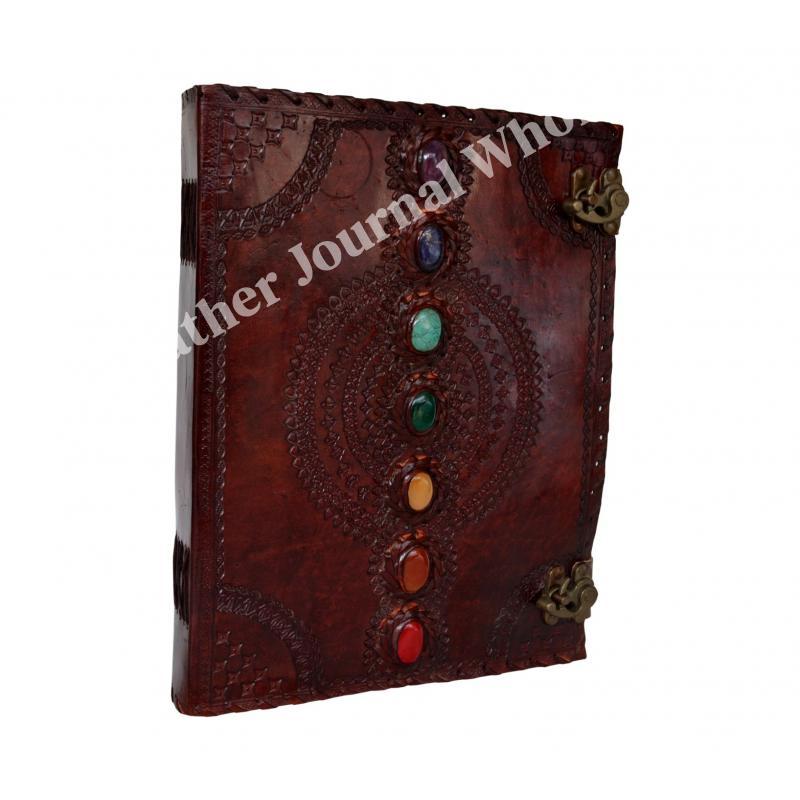 Handmade Seven chakra leather journals Book Of Shadows Leather Journal Extra Large 7 Chakra Stone Wicca