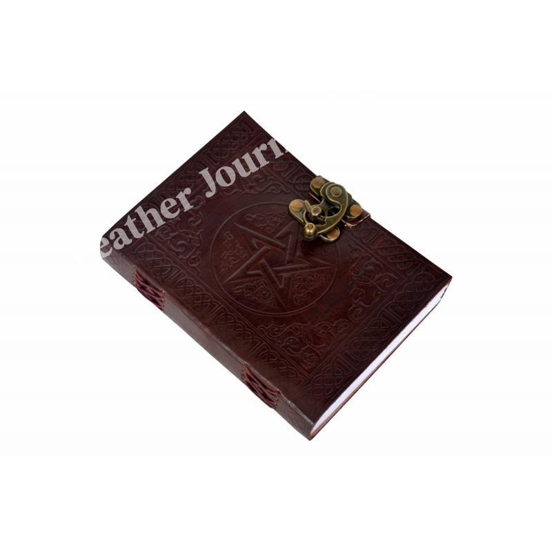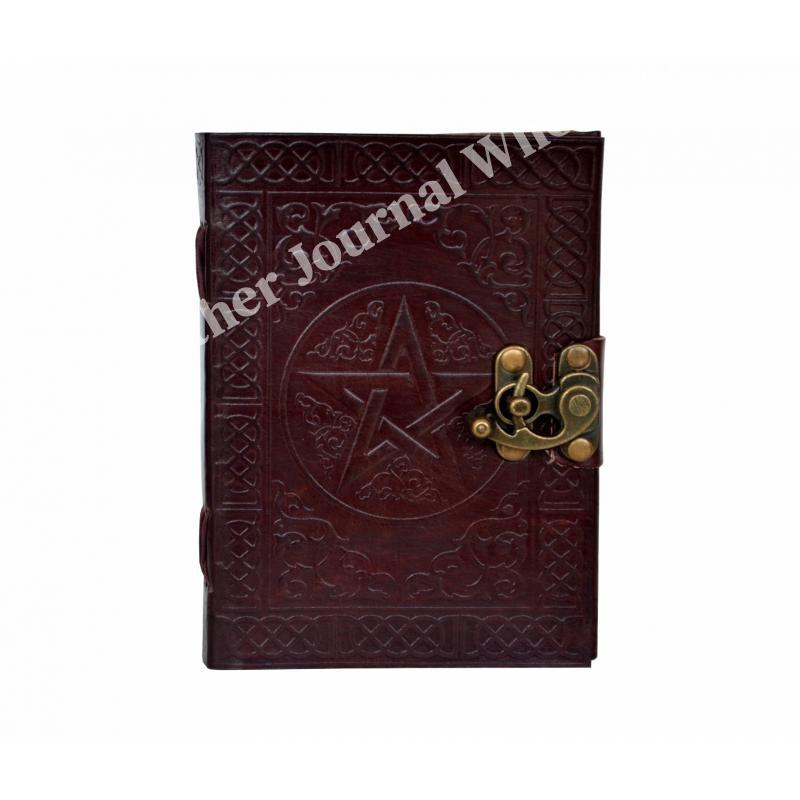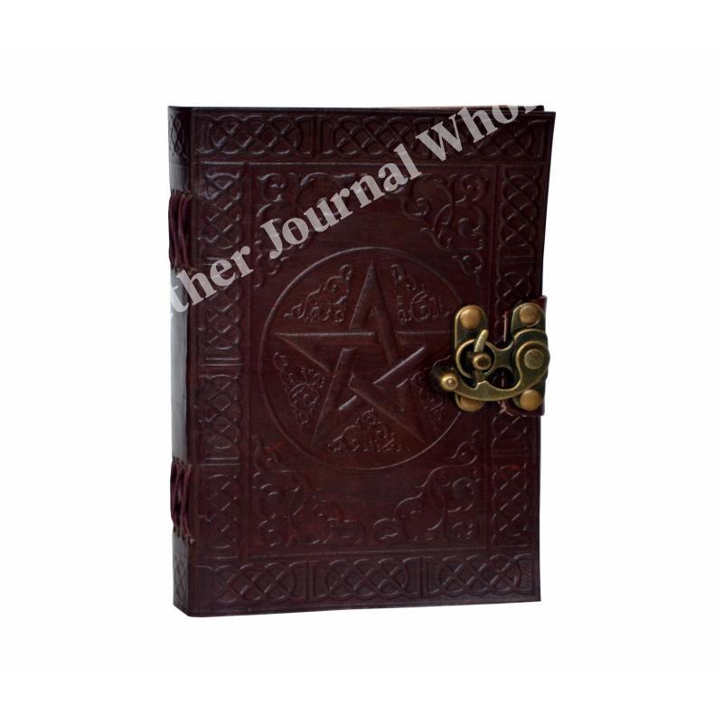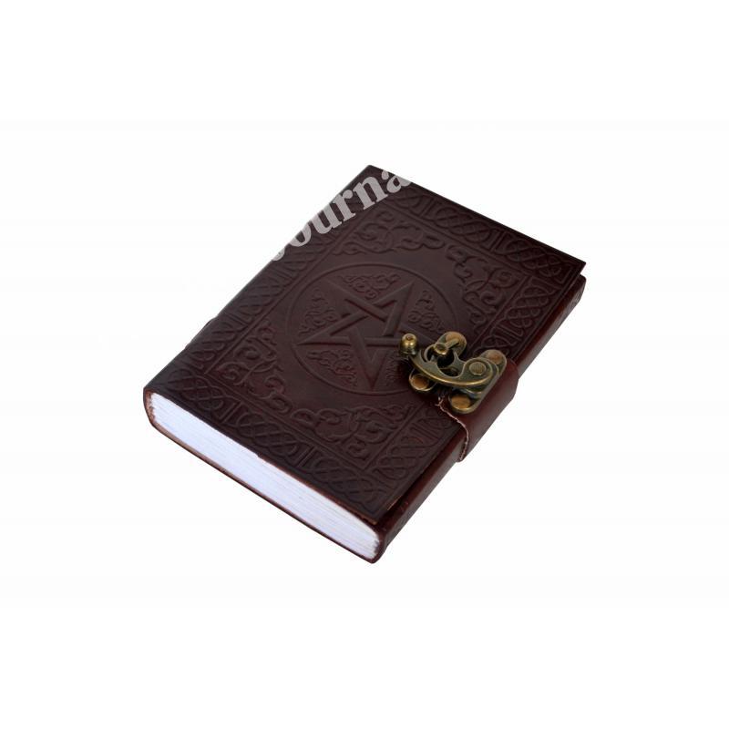 路Handcrafted out of Indian leather with 120 pages of recycled Indian cotton paper Pentagram Embossed Leather Journal Diary With one C Lock Blank Diary