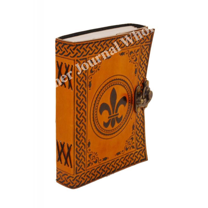 路Handcrafted out of Indian leather with 120 pages of recycled Indian cotton paper Pentagram Embossed Leather Journal Diary With one C Lock Blank Diary