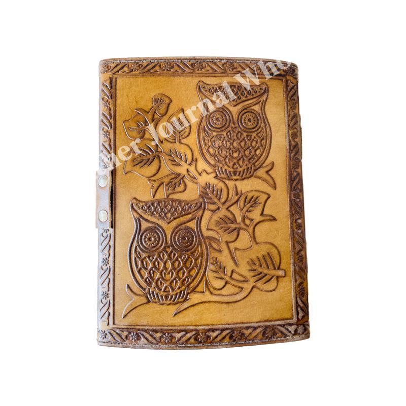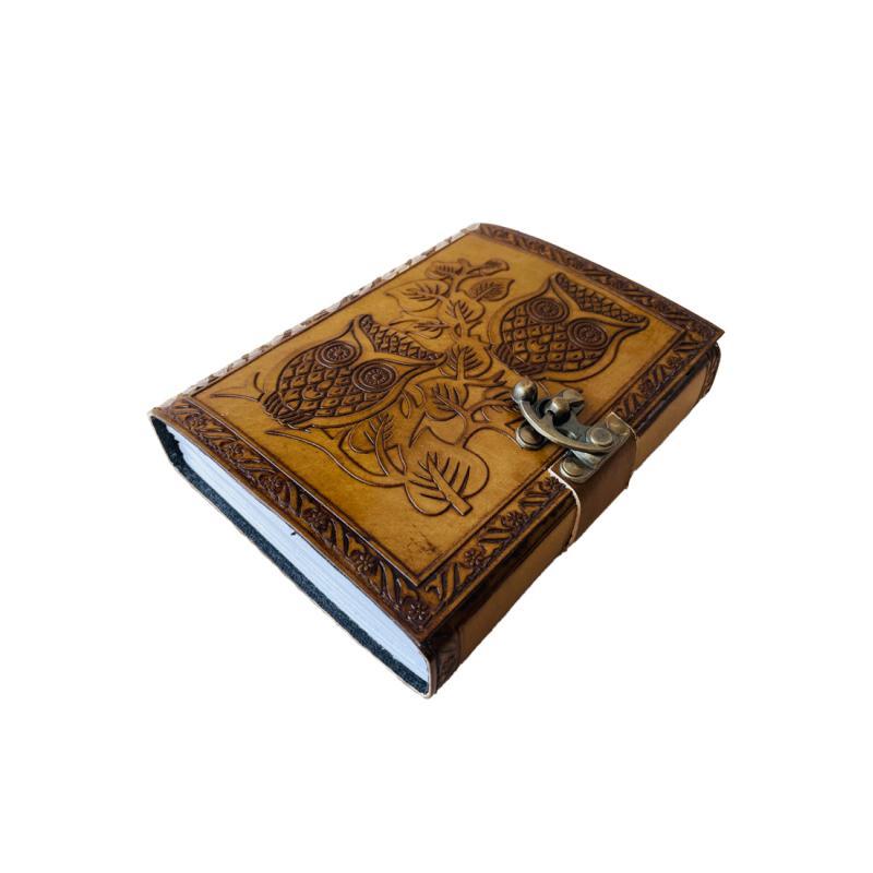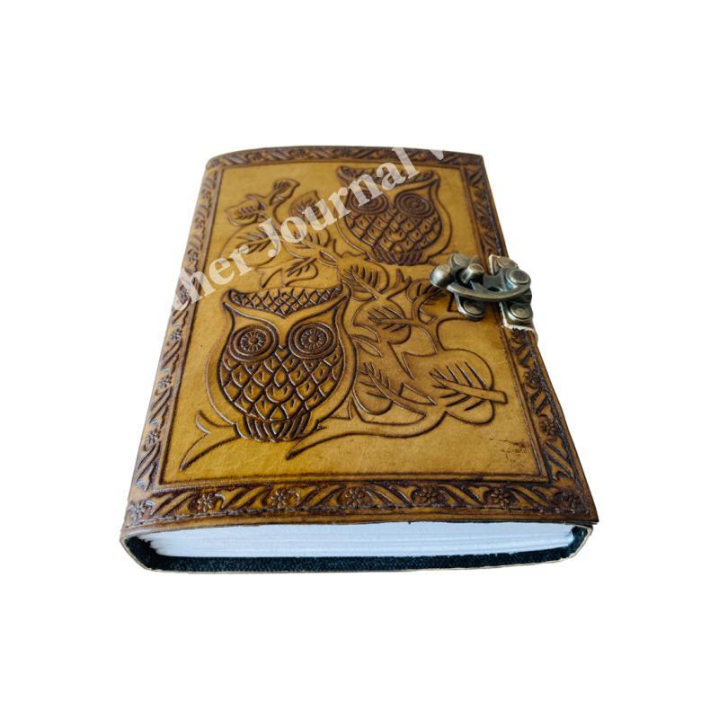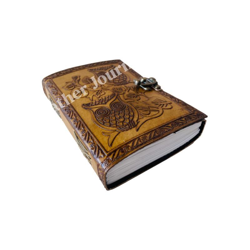 Handmade Cotton Paper Leather Journal Diary with Embossed Design of Owl Antique Diary with Vintage Lock Personal Diary for Women