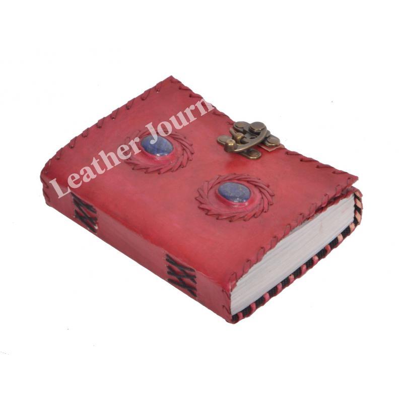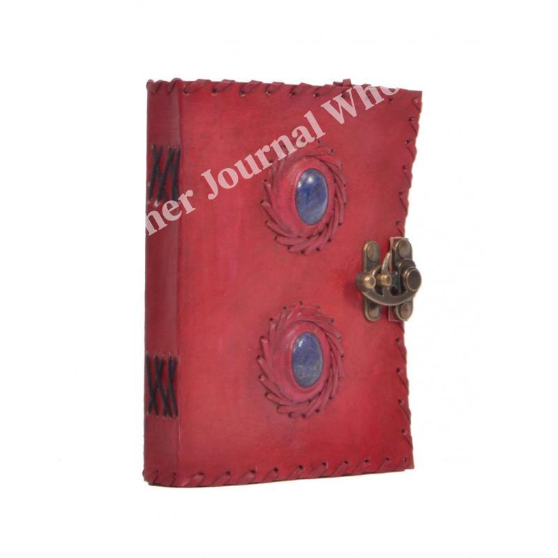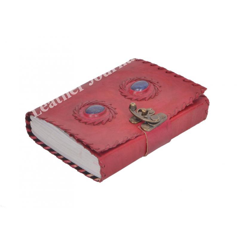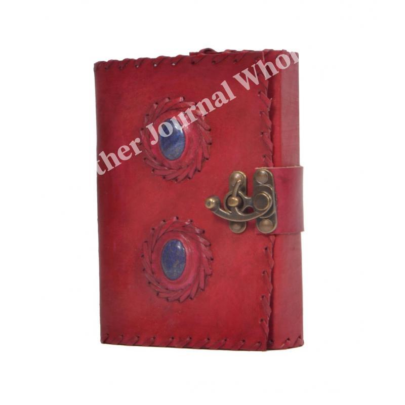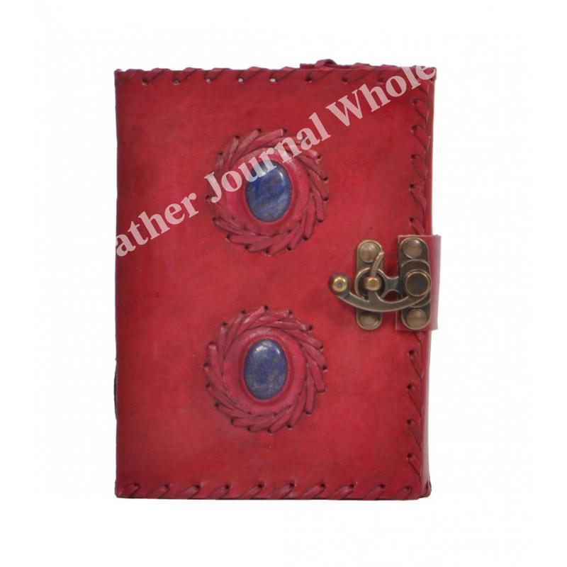 Handmade Design Two Stone Leather Journal Red Color Diary Notebook