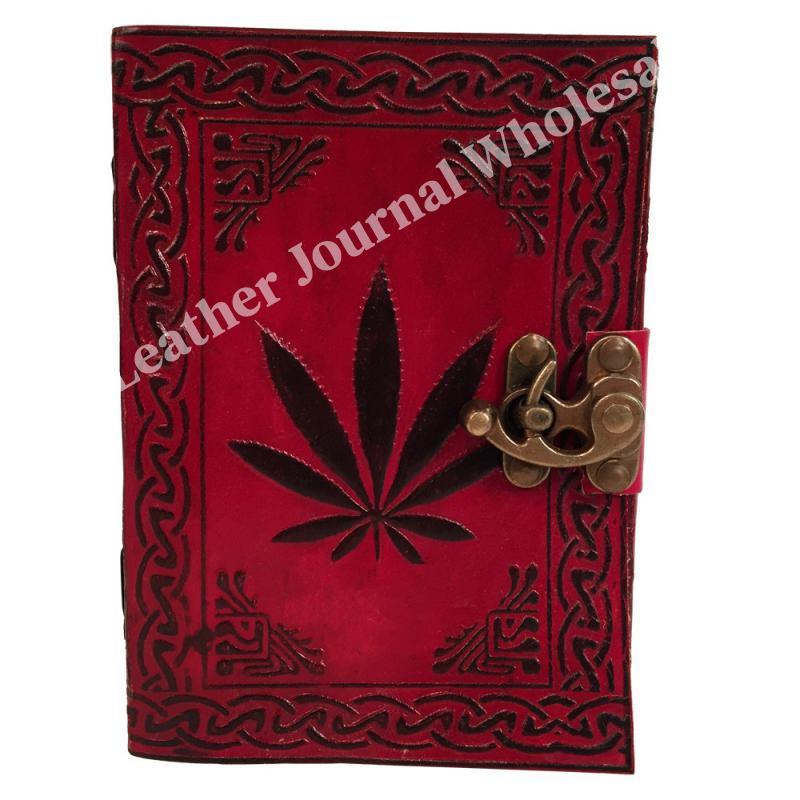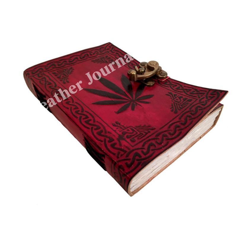 Handmade Embossed Black With Red Colors Leaf Leather Journal Exclusive Pattern Embossed Off White Handmade Papers