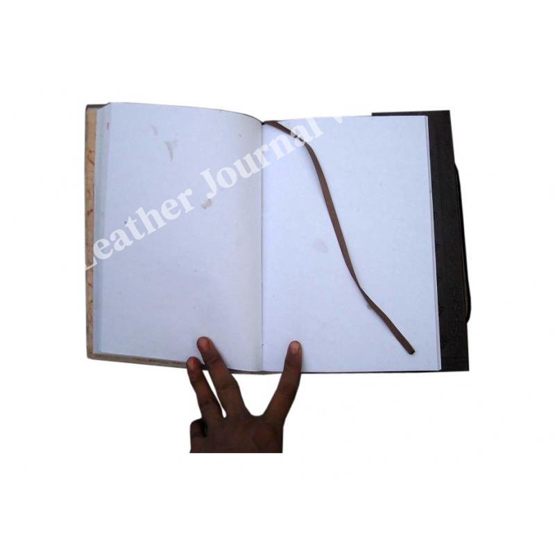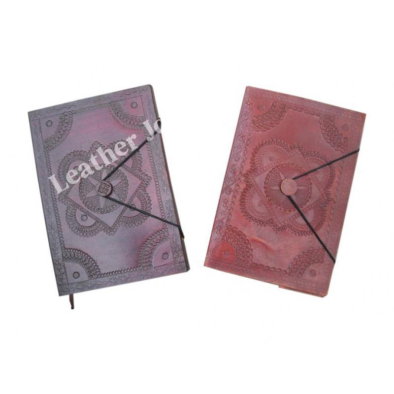 Handmade Embossed Leather Journal - Album with Center Stone Brown Note Book dairy