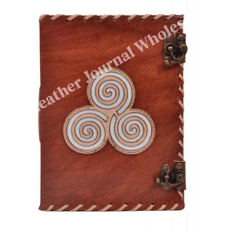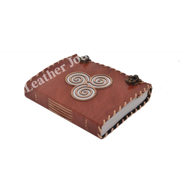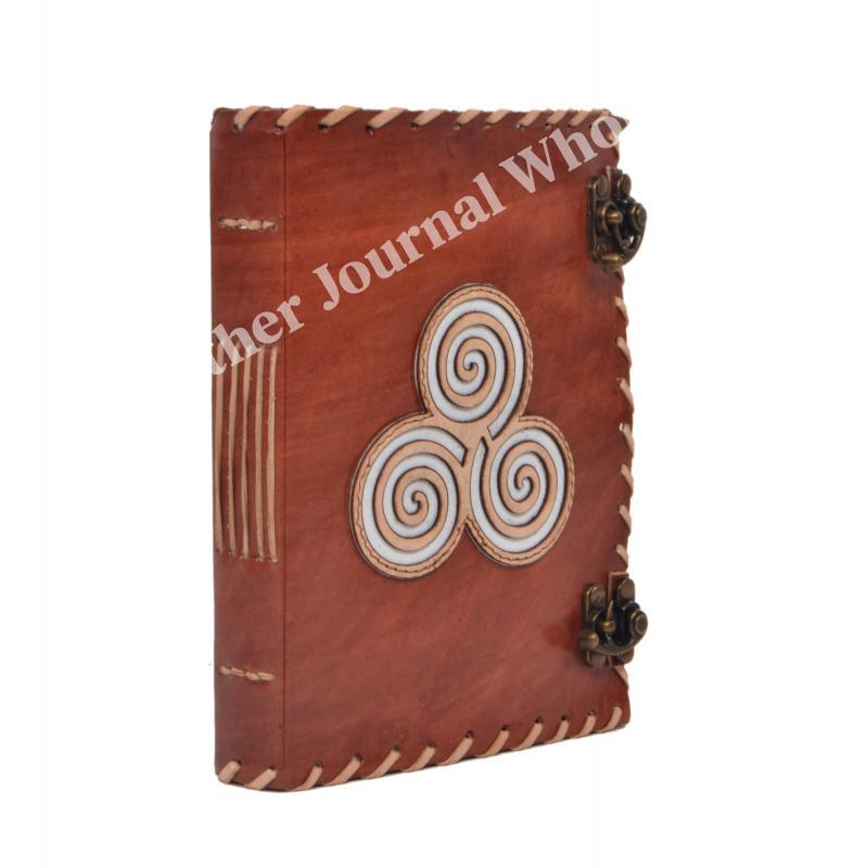 Handmade Genuine Vintage Leather Journal Celtic Triskele Embroidery Design Blank Unlined Paper Leather Journal Notebook