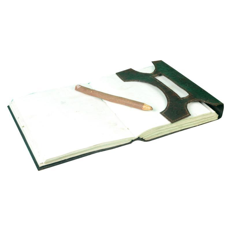 路The embossing on the cover has been done by hand with small individual tools making it unique. The sturdy stitching along the spine holds the papers in place.