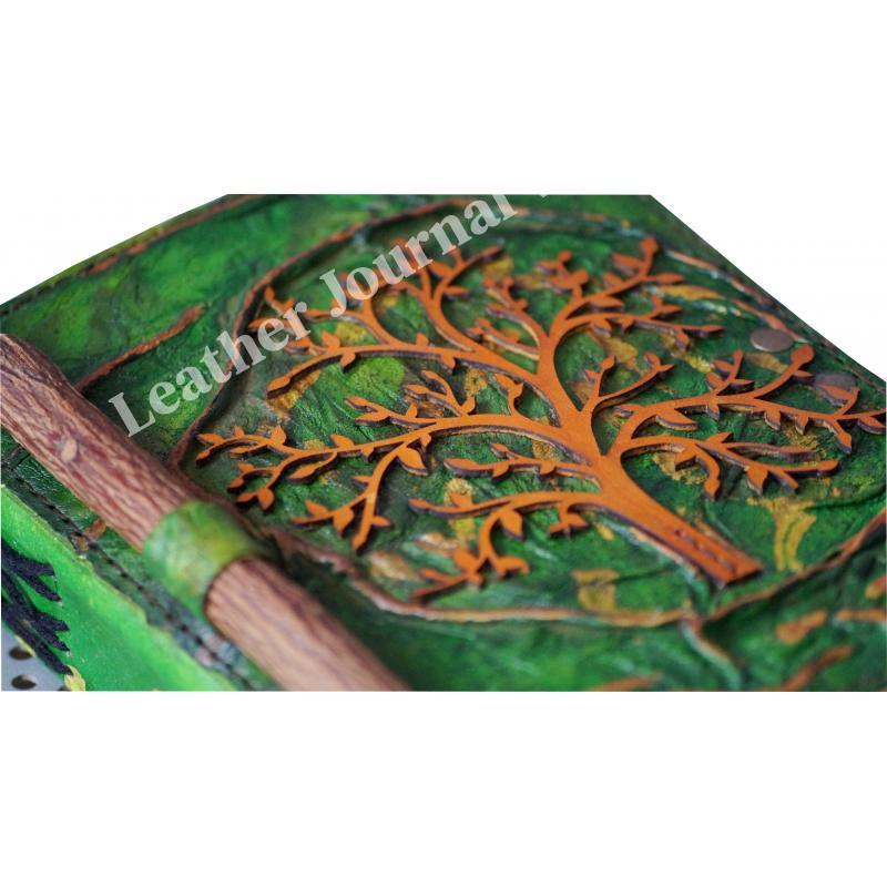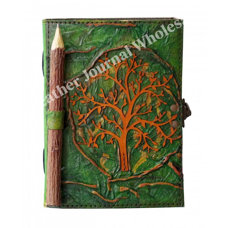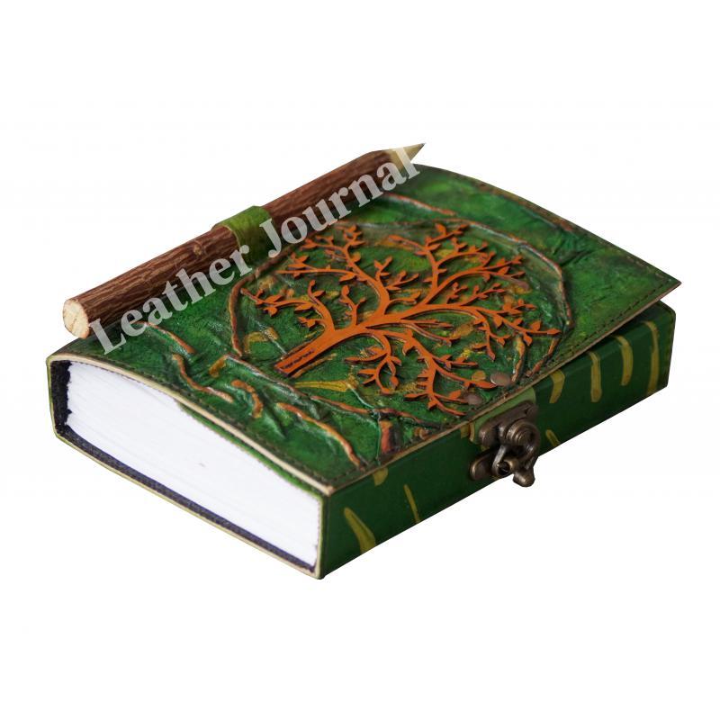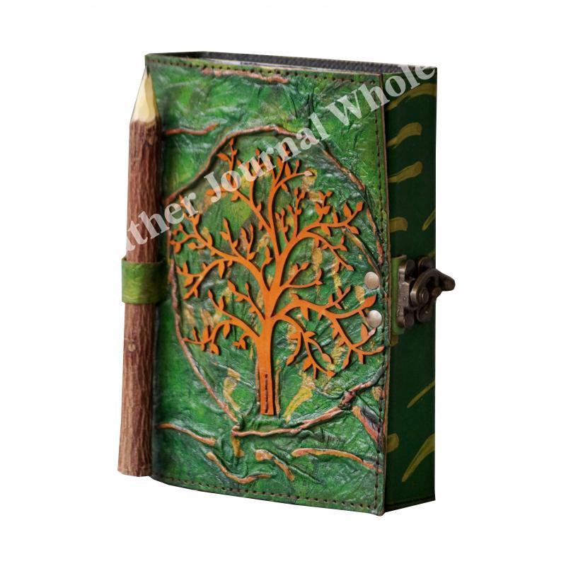路Handcrafted out of Indian leather with 120 pages of recycled Indian cotton paper Tree of life Antique Embossed Leather Journal Diary With one C Lock Blank Diary