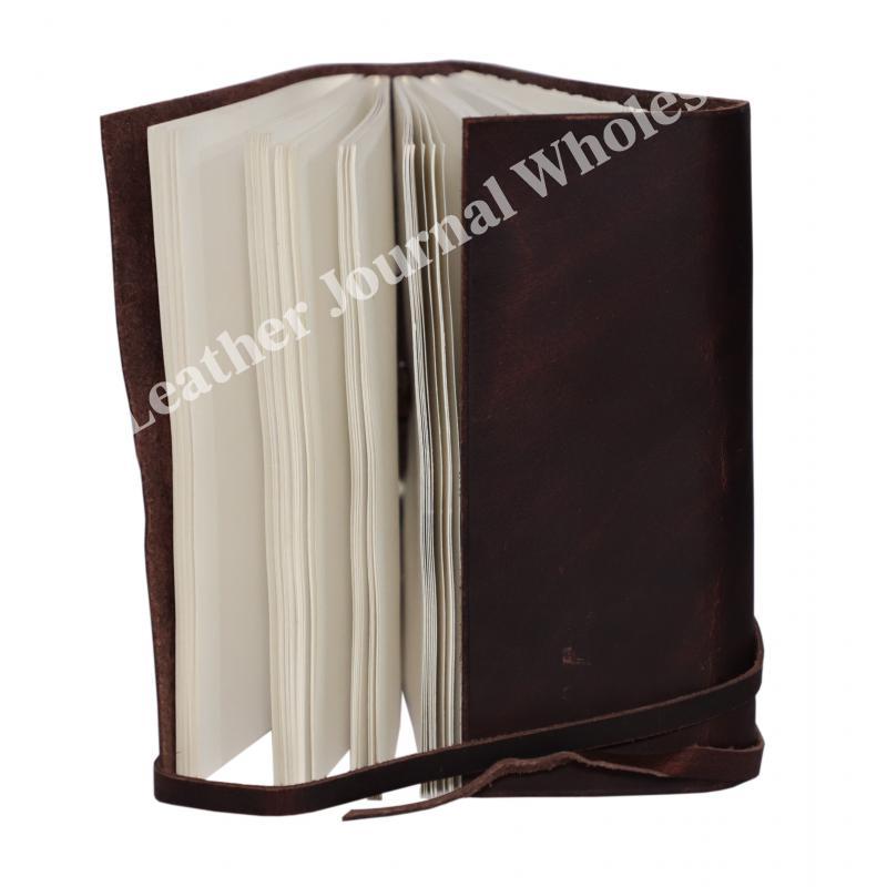 HANDMADE, VINTAGE DESIGN CRAFT UNLINED PAPER : 100% handmade leather books are complemented with a durable thread and a bound-to-last hand-sewn binding, adding to the book’s decorative appeal - A self-leather wrap tie keeps your treasured writings under cover - Unlike many other leather notebooks with raw edges, our journal leather has an old-world feel with burnished finish.