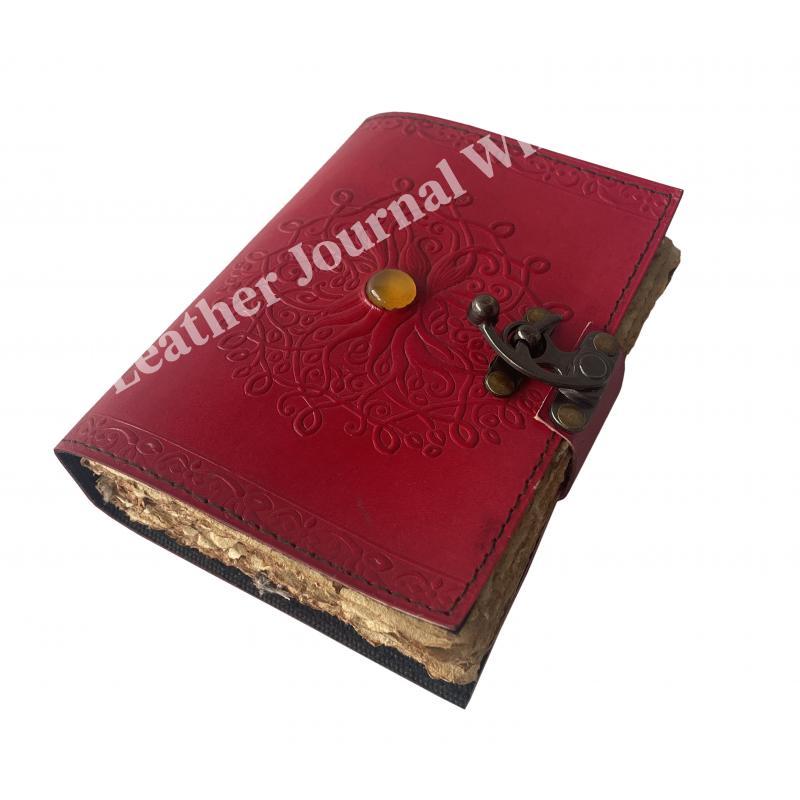HANDMADE DECKLE PAPER : 100% handmade leather books are complemented with a durable thread and a bound-to-last hand-sewn binding, adding to the book’s decorative appeal - A self-leather wrap tie keeps your treasured writings under cover - Unlike many other leather notebooks with raw edges, our journal leather has an old-world feel with burnished finish.