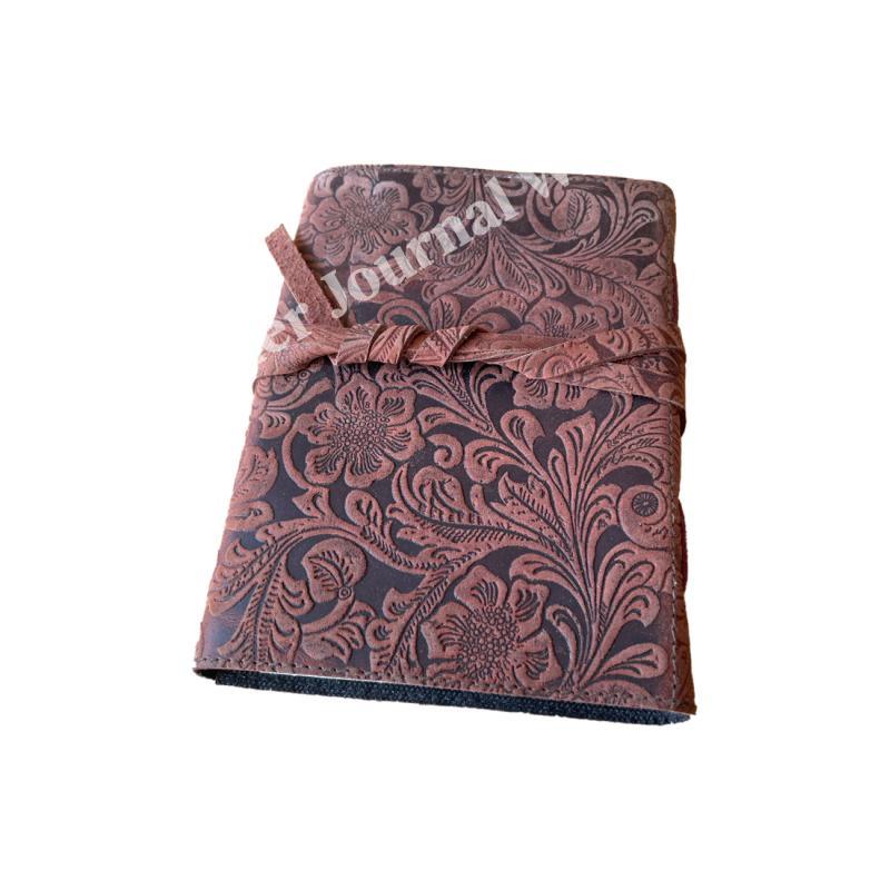 Handmade Leather Journal Soft Garden Flower Vintage Book Of Spells Blank Notebook Bound Deckle Pages Custom Sketchbook Diary