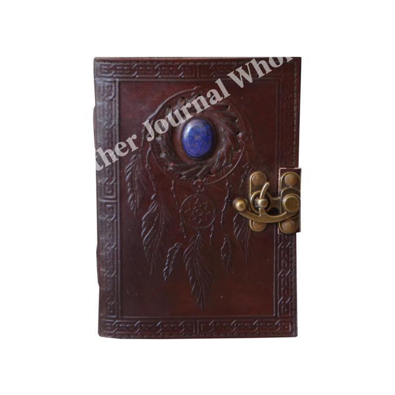 Handmade Leather Journal Wholesaler Celtic Dream Catcher Single Blue Stone Notebook