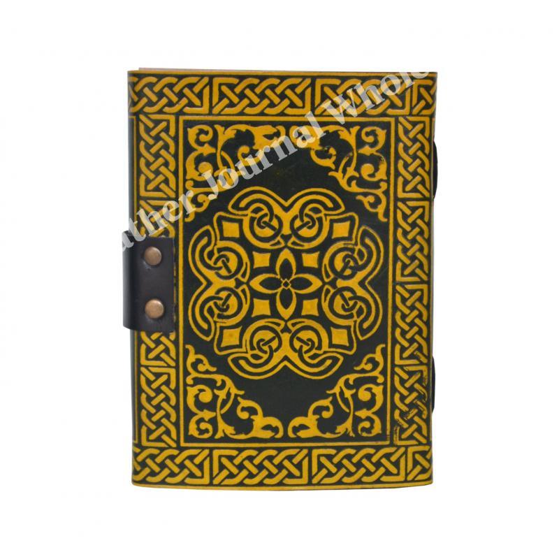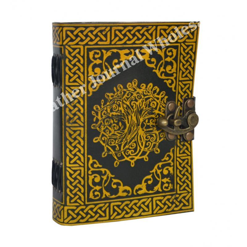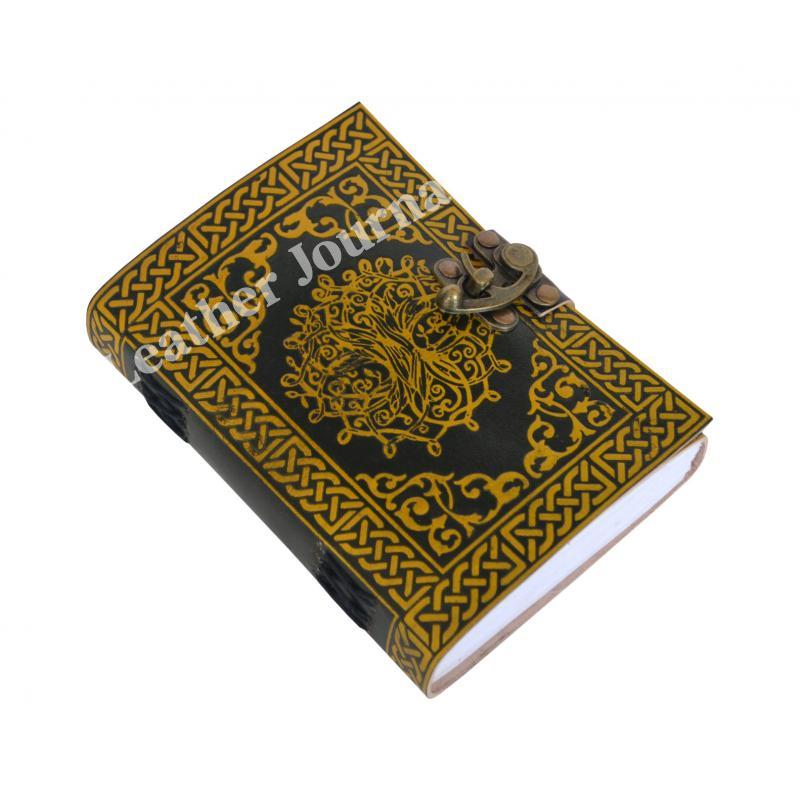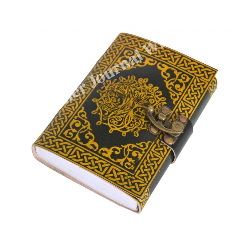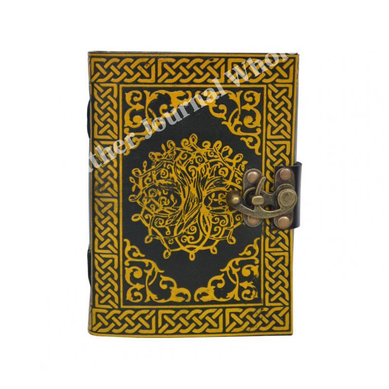 Handmade Leather Sketchbook Journal diary Celtic Tree of Life Book of Shadow Yellow With Black