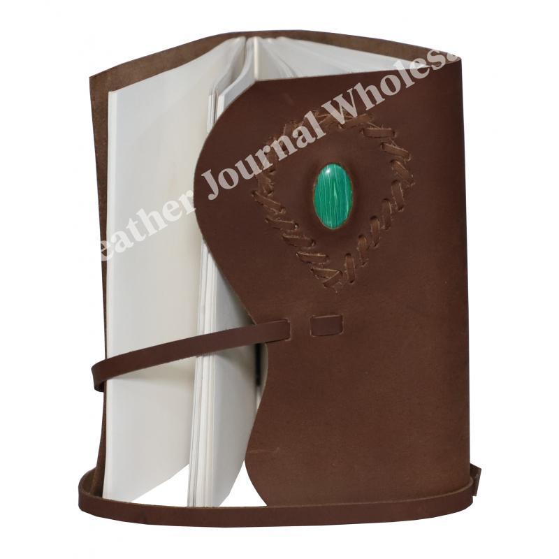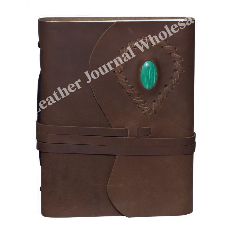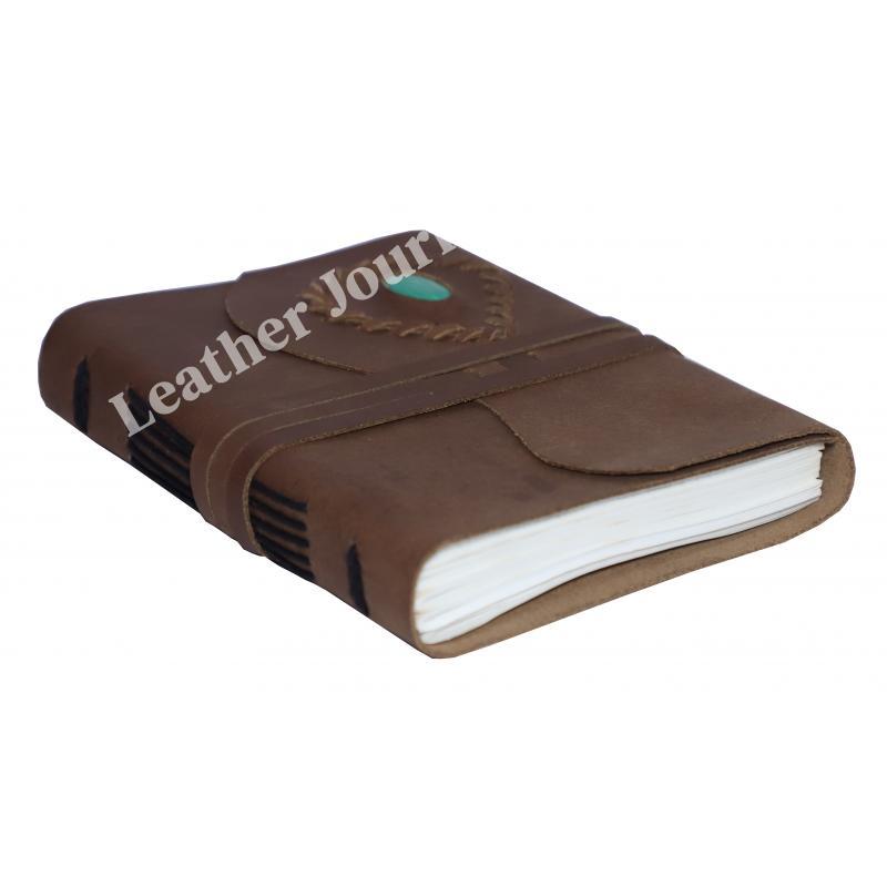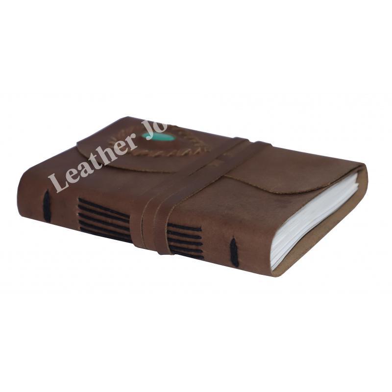 Handmade Soft Leather Journal Turquoise Stone Writing Bound Journals Diary Handmade Recycled Cotton 120 Blank Pages
